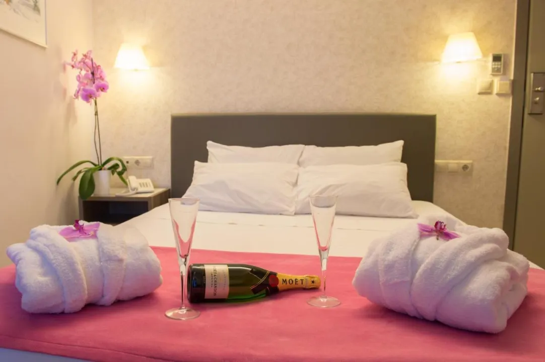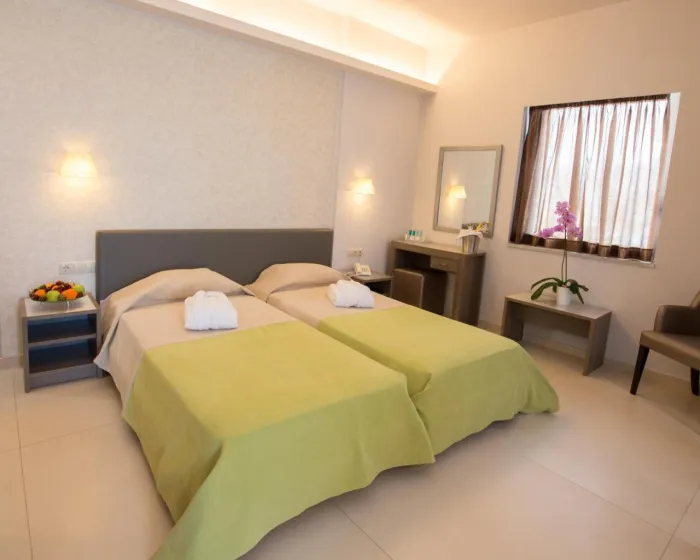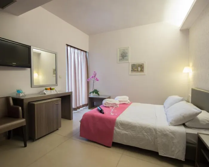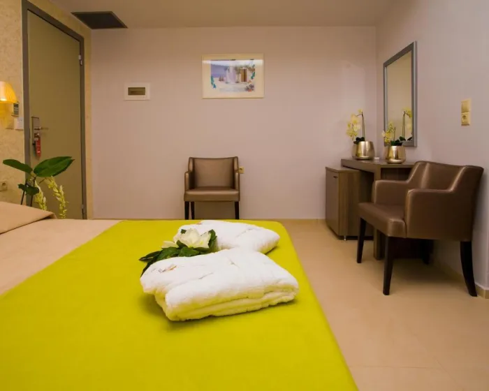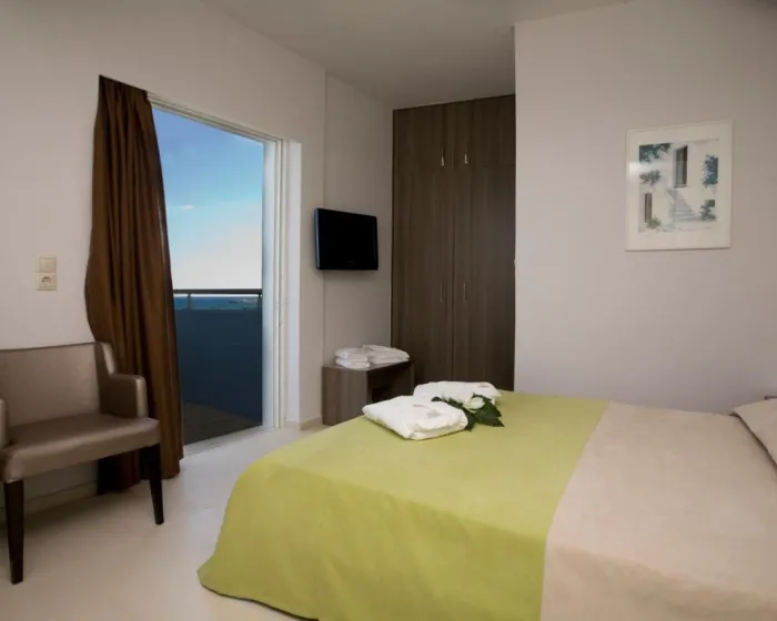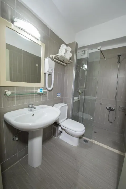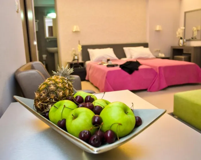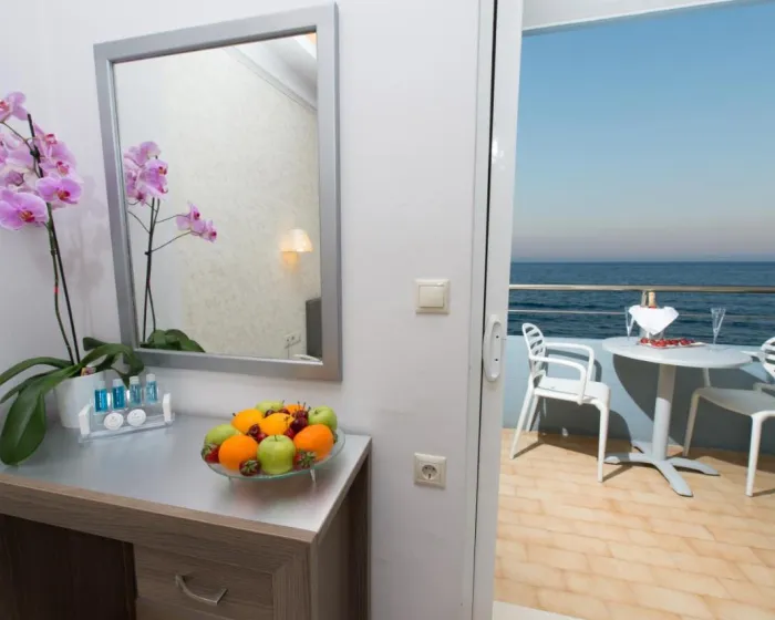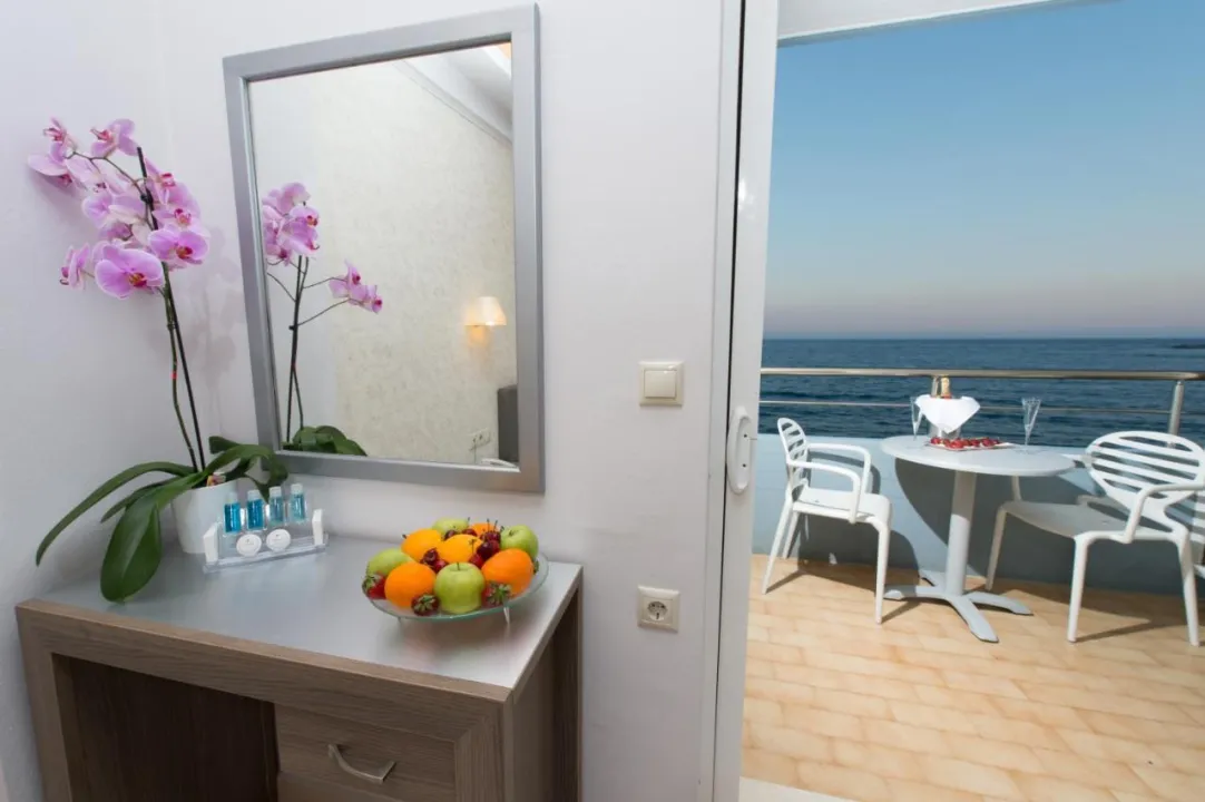 Air conditioning and central heating ensure that rooms maintain comfortable temperatures. Guests can enjoy the sea view from a balcony or terrace. The rooms have a double bed and a sofa bed. Children's beds and extra beds can be requested for younger guests. A safe, a minibar and a desk are also available. Guests will also find a refrigerator included among the standard features. An ironing set is provided for guests' convenience. Other features include a telephone, satellite television, an alarm clock and WiFi (no extra charge). Bathrooms are equipped with a shower and a bathtub, as well as a hairdryer. Cosmetic products and a selection of towels provide additional comfort in the bathrooms. Guests can also book wheelchair-friendly rooms with wheelchair-accessible bathrooms. The hotel has family rooms and non-smoking rooms.