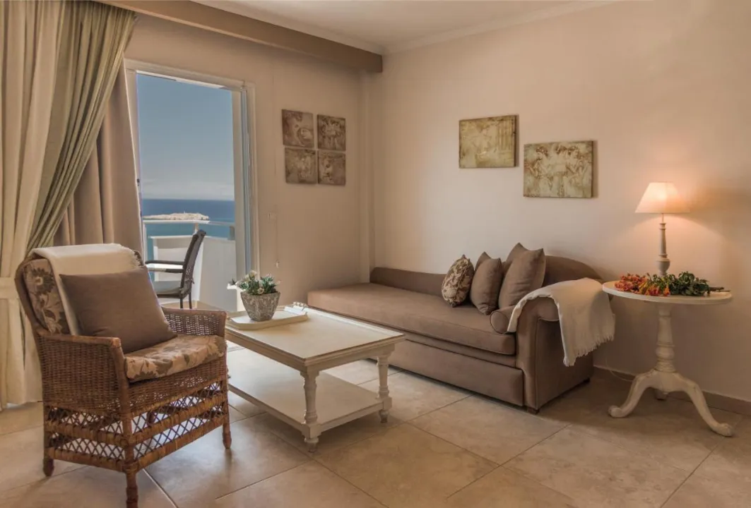 Sobe su opremljene klima uređajem i centralnim grejanjem. Gosti mogu opuštajući se i uživajući u pogledu na more sa balkona ili privatne terase nekih soba. Sobe imaju bračni krevet i sofu na razvlačenje. Dostupne su i odvojene spavaće sobe. Kreveti za decu mogu biti zatraženi za mlađe goste. Takođe su dostupni sef i minibar. Dodatne karakteristike uključuju frižider, mini frižider i mesto za čaj/kafu. Set za peglanje je obezbeđen radi praktičnosti gostiju. Takođe su obezbeđeni telefon, satelitska televizija, CD plejer, DVD plejer i WiFi. Papuče su uključene. Fen za kosu i bade mantili su dostupni u kupatilima koja su opremljena tuš kabinom i kadom. Kozmetički proizvodi i izbor peškira pružaju dodatnu udobnost u kupatilima. Gosti takođe mogu rezervisati sobe prilagođene za invalidska kolica sa prilagođenim kupatilima. Hotel ima porodične sobe i sobe za nepušače.