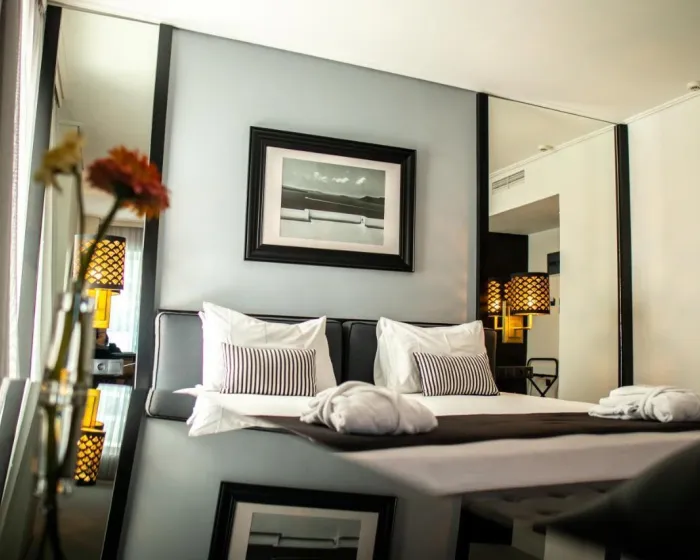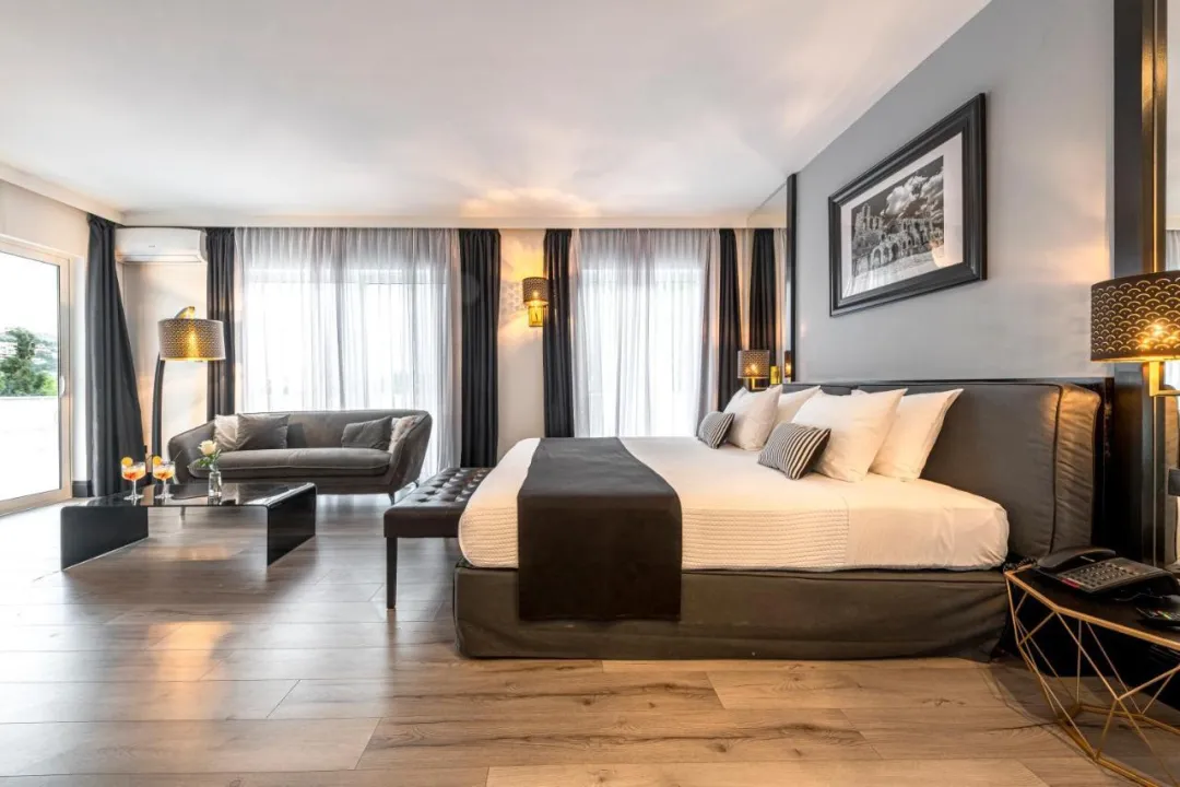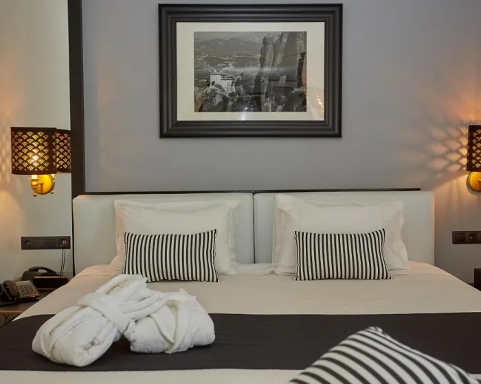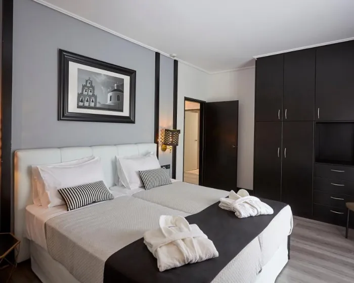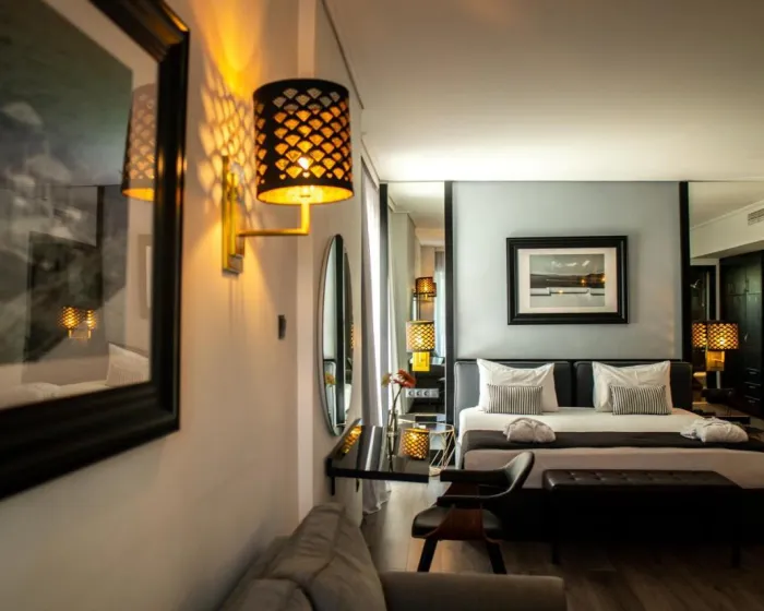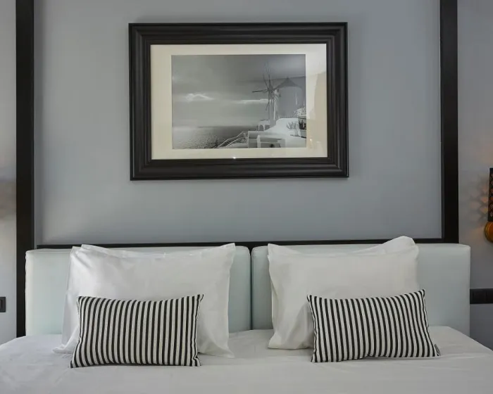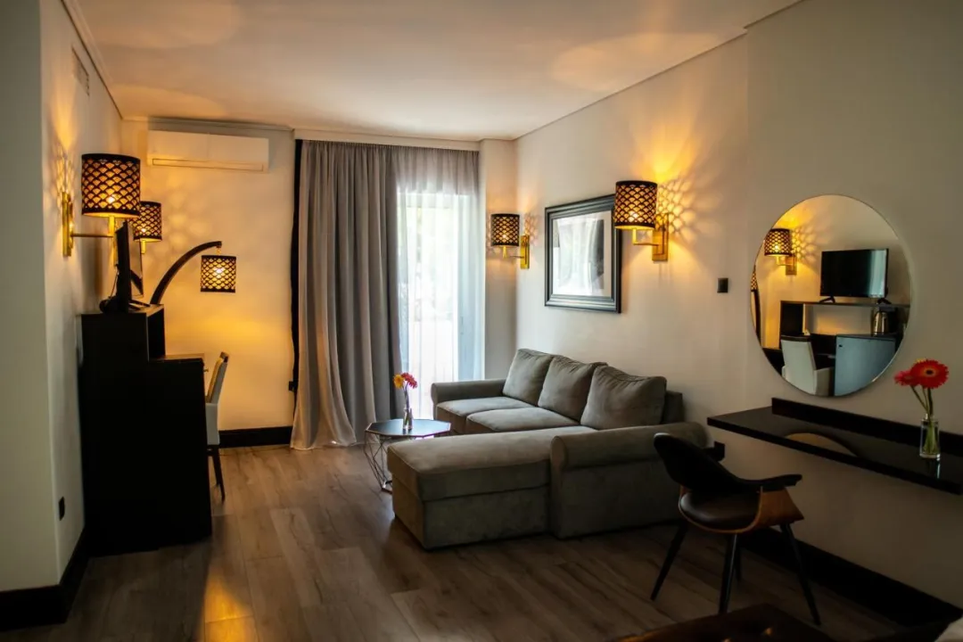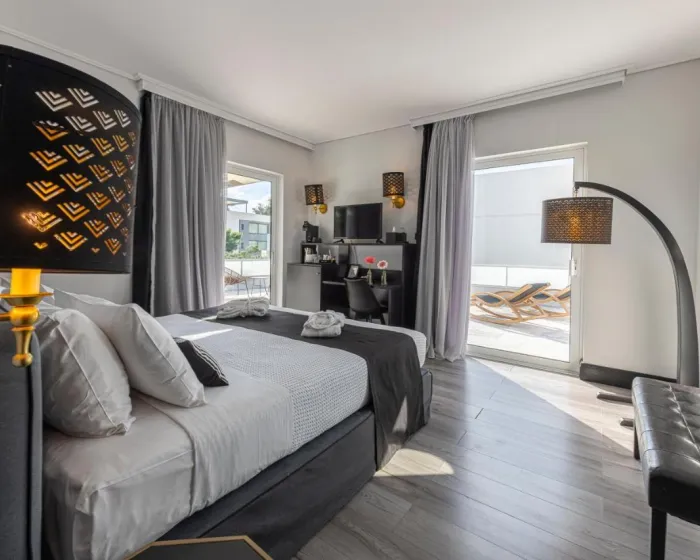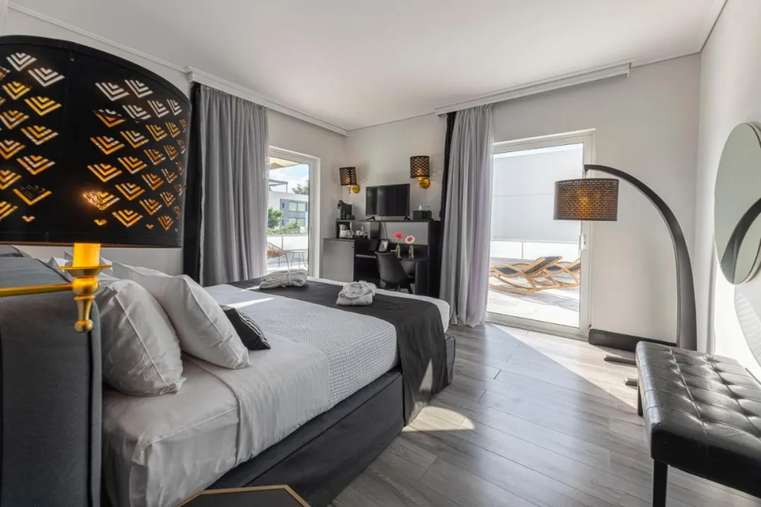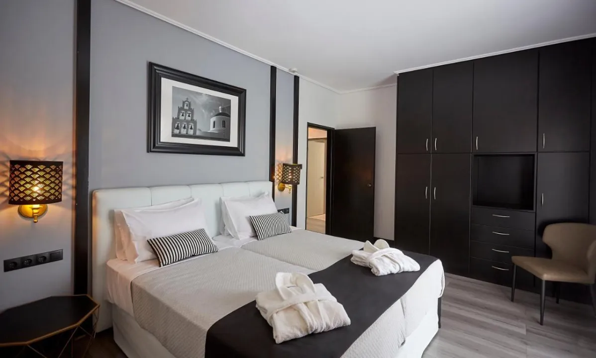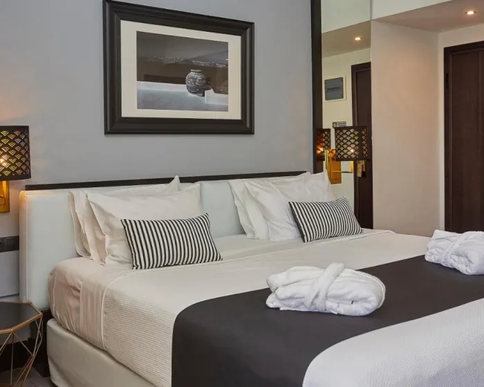 Sobe su opremljene klima uređajem i centralnim grejanjem. U većini jedinica, gosti mogu uživati u pogledu na more sa balkona ili terase. Sobe imaju bračni krevet i sofu na rasklapanje. Dodatni kreveti mogu biti zatraženi. Sef i mini bar su takođe dostupni. Telefon, TV i WiFi (bez dodatne naplate) osiguravaju optimalnu udobnost. Papuče su uključene. Fen za kosu i bade mantili se pružaju u kupatilima, koja uključuju đakuzi kadu. Hotel ima porodične sobe i sobe za nepušače.