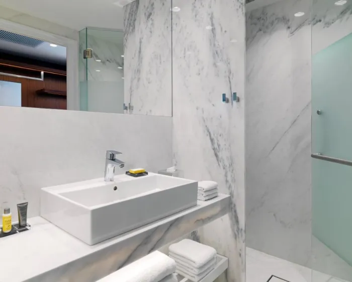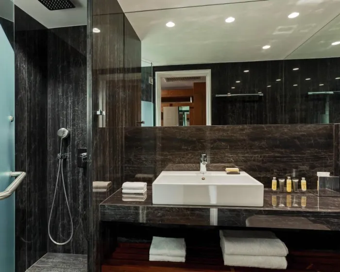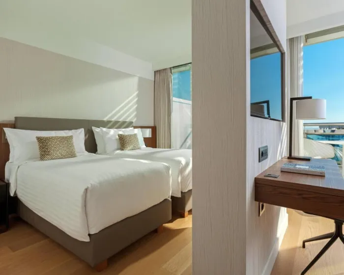 Klima uređaj, centralno grejanje i ventilator osiguravaju da sobe održavaju udobne temperature. U većini jedinica, gosti mogu uživati u pogledu na more sa balkona ili terase. Sobe imaju bračni krevet i kauč na razvlačenje. Dodatni kreveti se mogu zatražiti. Takođe su dostupni sef, minibar i radni sto. Dodatne opcije uključuju mini frižider i aparat za čaj/kafu. Postavljen je set za peglanje radi praktičnosti gostiju. Takođe su obezbijeđeni direktna telefonska linija, televizor sa satelitskim/ kablovskim kanalima, radio, CD plejer, alarmni sat i WiFi. Gosti mogu iskoristiti uslugu usluge za noćenje. Papuče su uključene. Fen za kosu i telefon dostupni su u kupatilima, opremljenim tušem i kadom. Za dodatnu udobnost u kupatilima, gostima su ponuđeni kozmetički proizvodi. Gosti takođe mogu rezervisati sobe prilagođene osobama u invalidskim kolicima sa pristupačnim kupatilima. Hotel ima porodične sobe, sobe za nepušače i sobe za pušače.