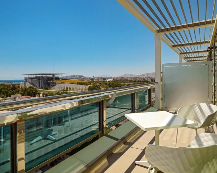 Athens Marriott Hotel se nalazi usred prelepog od 300 m² bašte, direktno na ulici Syngrou, na samo 20 minuta od trga Sintagma, centra Atine i tornja Pireja. Najbliže golfsko igralište udaljeno je samo 7 km. Atinski aerodrom je udaljen samo 45 minuta vožnje autobusom do hotela. U neposrednoj blizini nalazi se autobuska stanica sa direktnim vezama do centra grada. Pored toga, postoji besplatan hotelski autobus koji vozi do centra.