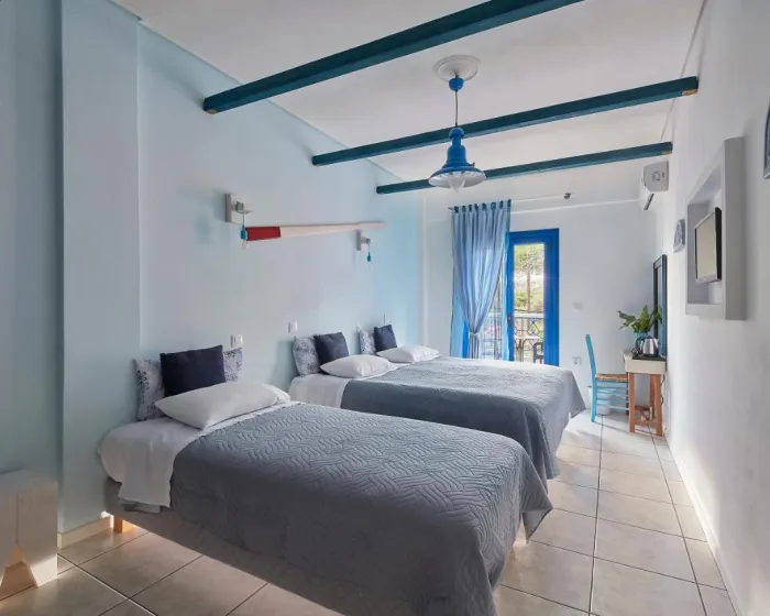 Klima uređaj i centralno grejanje osiguravaju da sobe održavaju ugodnu temperaturu. Gosti mogu da se opuste i uživaju u pogledu na more sa balkona ili privatne terase nekih soba. Sobe imaju bračni krevet ili krevet queen size. Dodatni kreveti mogu biti zatraženi. Sef pruža sigurno čuvanje lične imovine gostiju. Gosti će takođe pronaći frižider među standardnim sadržajima. Telefon, TV i WiFi (bez dodatne naplate) su takođe obezbeđeni. Kupatila su opremljena tušem i kadom, kao i fenom za kosu. Mogu se rezervisati i sobe prilagođene osobama u kolicima. Hotel ima sobe za nepušače.