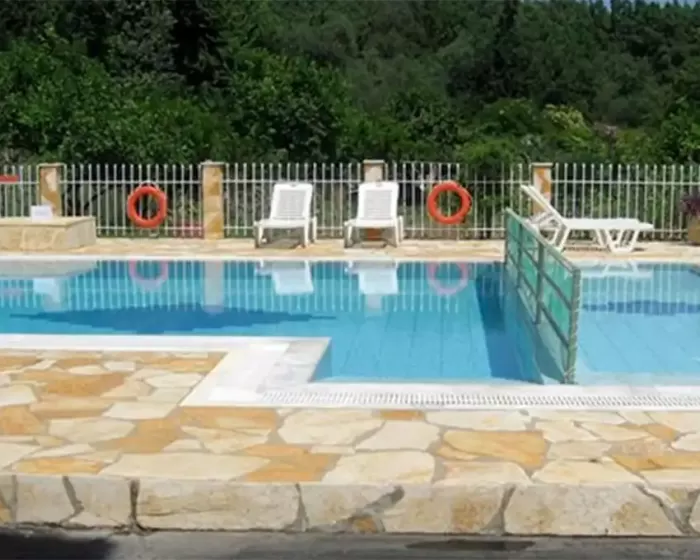 Vila Athineos Dassia se nalazi u mestu Dasija (ne prelazi se magistrala), pored hotela Club Med, 500 metara od šljunkovite plaže. U sklopu apartmana nalazi se dvorište sa bazenom i ležaljkama.Smeštaj u vili isključivo vezan za avionski prevoz (ne može odvojeno od avio-prevoza).