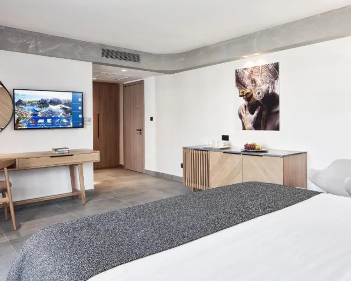 Klima uređaj i centralno grejanje obezbeđuju udobne temperature u sobama. Gosti mogu da se opuste i uživaju u pogledu na more sa balkona ili privatne terase nekih soba. Sobe imaju bračni krevet ili sofu. Dodatni kreveti mogu biti zatraženi. Sejf, minibar i radni sto su takođe dostupni. Gosti će takođe pronaći prostor za čaj/kafu među standardnim funkcijama. Set za peglanje je obezbeđen radi praktičnosti gostiju. Satelitska televizija i WiFi (bez dodatne naknade) su takođe obezbeđeni. Papuče su uključene. Fen, ogledalo za šminkanje, bade mantili i telefon su na raspolaganju u kupatilima za svakodnevnu upotrebu. Kozmetički proizvodi i izbor peškira pružaju dodatnu udobnost u kupatilima. Porodične sobe su dostupne za roditelje sa decom.
