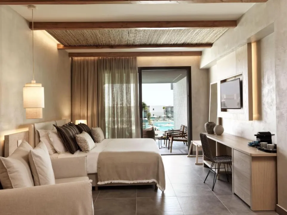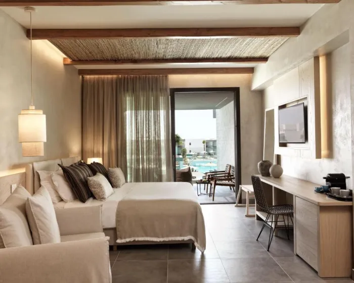 Sobe su opremljene klima uređajem i centralnim grejanjem. U većini jedinica, gosti mogu uživati u delimičnom pogledu na more sa terase. Mnoge jedinice imaju pogled na more, što stvara posebno divnu atmosferu. Sobe imaju bračni krevet i sofu. Dodatni kreveti mogu biti zatraženi. Takođe su dostupni sef i minibar. Dodatne karakteristike uključuju mini frižider i aparat za kafu/čaj. Pribor za peglanje je obezbeđen radi praktičnosti gostiju. Takođe se pružaju direktni telefonski pozivi, satelitska televizija i WiFi (bez dodatne naplate). Izbor jastuka osigurava udoban boravak. Fen za kosu, bade mantili i telefon su na raspolaganju u kupatilima za svakodnevnu upotrebu. Za dodatnu udobnost u kupatilima, gostima se nude kozmetički proizvodi. Mogu se rezervisati sobe prilagođene za invalidska kolica. Odmaralište ima sobe za pušenje.