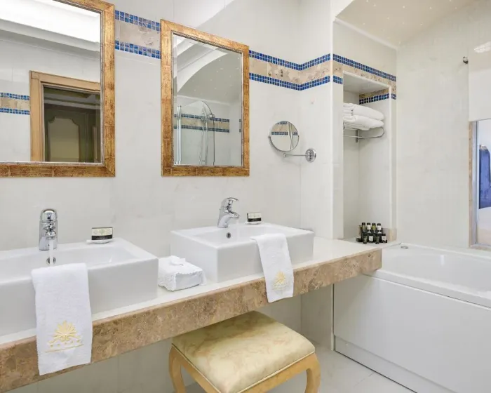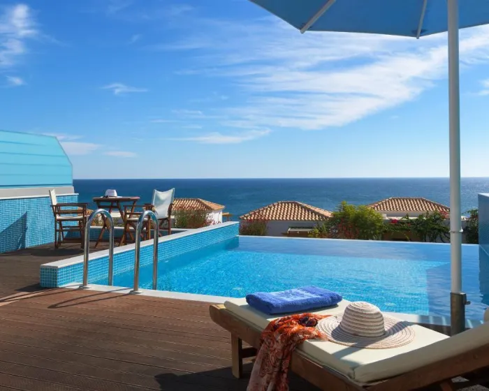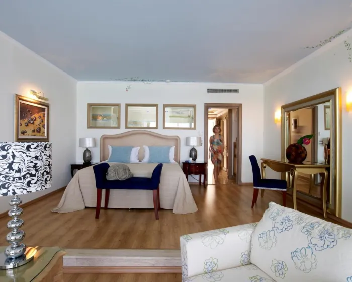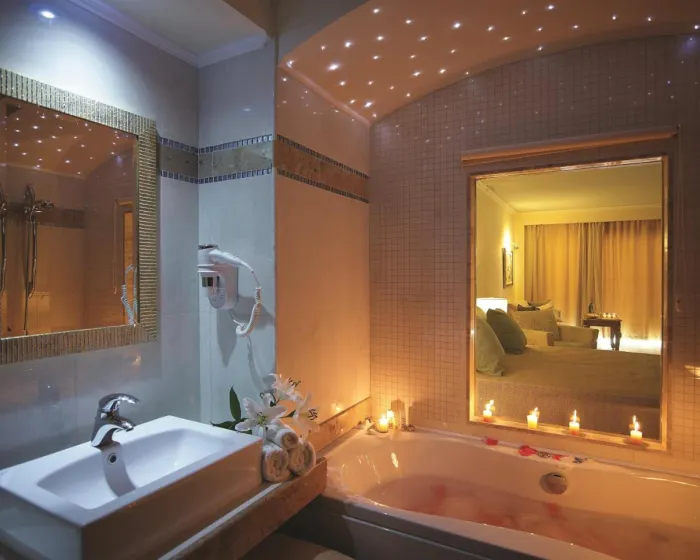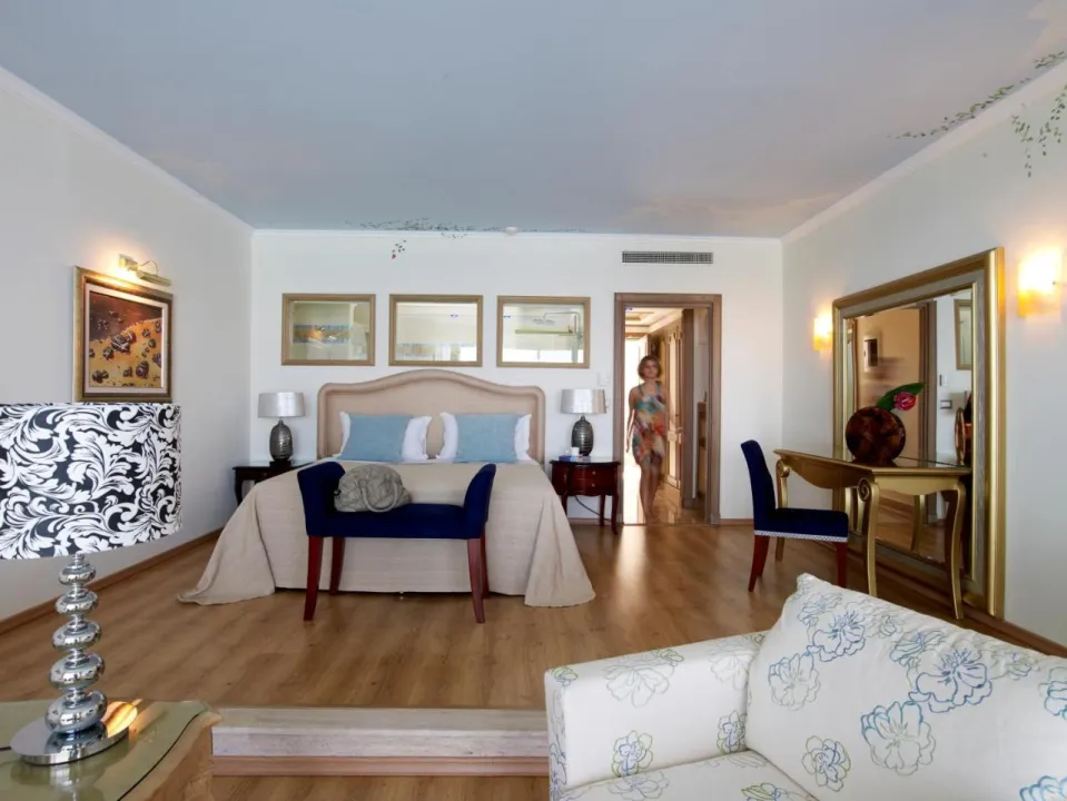 Gosti očekuje poklon dobrodošlice. U većini jedinica, gosti mogu uživati u pogledu na more sa balkona ili terase. Sobe uključuju bračni krevet. Za mlade putnike, mogu se obezbediti dečiji kreveti. Mini-bar je obezbeđen. Dodatne pogodnosti uključuju aparat za čaj/kafu i mašinu za pranje sudova. Televizor sa satelitskim/kablovskim kanalima je standard u sobama. Telefon je obezbeđen u kupatilima. Porodične sobe su dostupne za roditelje sa decom.