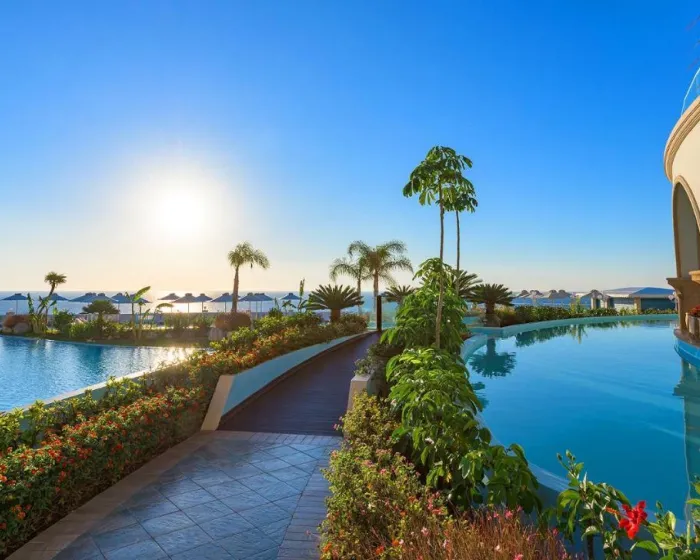 Hotel se nalazi na jugoistočnoj obali ostrva Rodos, direktno na peskovito/šljunkovitoj plaži u netaknutoj okolini Lahanije. Do tradicionalnog sela Lahanija, sa tipičnim belim kućama, ima samo 5 km od hotela, a do Genadija oko 12 km. Do najjužnije tačke ostrva, Prasonisi, gde se sastaju Sredozemno more i Egejsko more, udaljeno je 18 km, a do čuvenog sela Lindos, sa antičkom akropolom, 30 km. Međunarodni aerodrom Rodos je udaljen oko 75 km od hotela.