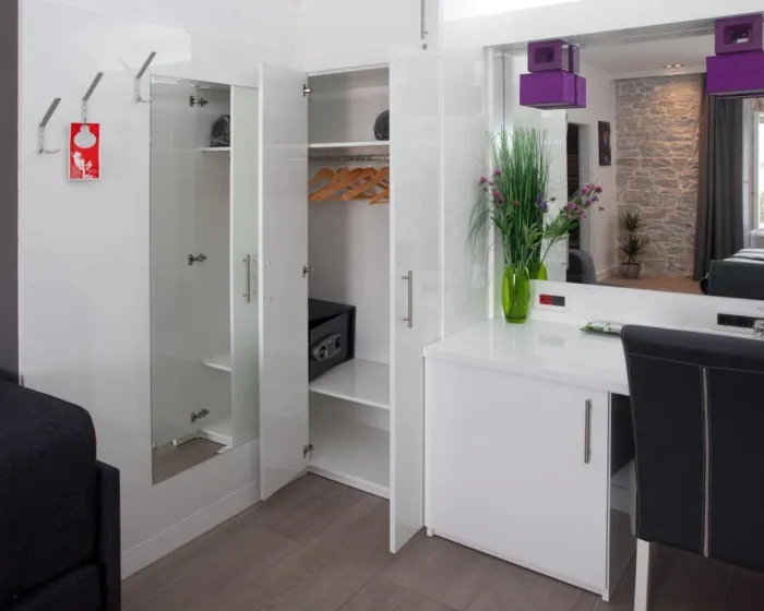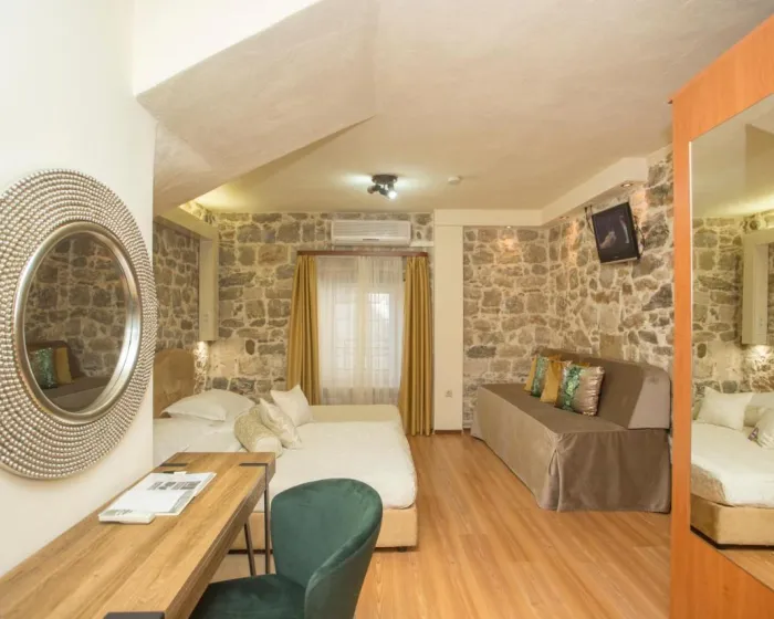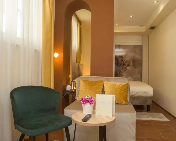 Centralno grejanje osigurava da sobe održavaju prijatne temperature. Većina jedinica ima pogled na more. Sobe imaju bračni krevet ili krevet veličine king size. Dodatni kreveti mogu biti zatraženi. Na raspolaganju su sef i mini bar. Frižider, mini frižider i čajna/kafena stanica standardne su funkcije. TV, radio i WiFi (bez dodatne naknade) pružaju sve neophodno za udoban odmor. Hotel ima sobe za nepušače.