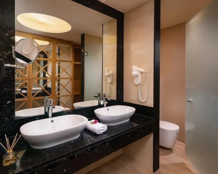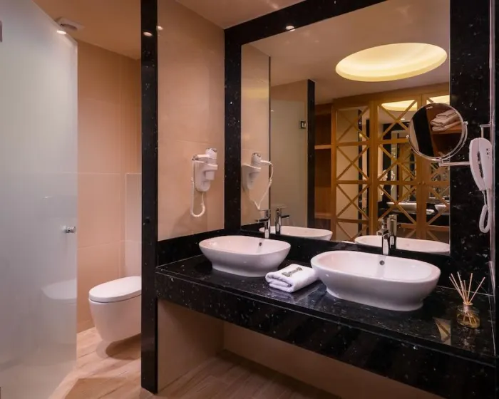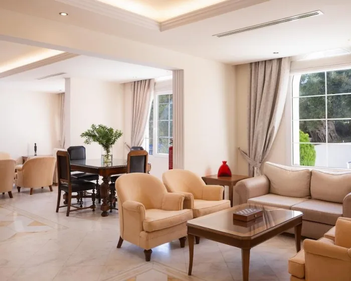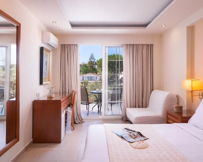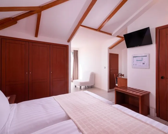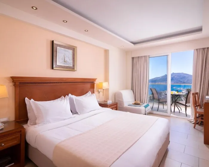 Klima uređaj i centralno grejanje garantuju da sobe održavaju udobne temperature. Gosti mogu opustiti i uživati u pogledu na more sa balkona ili privatne terase pojedinih soba. Sobe imaju bračni krevet, krevet queen-size ili sofu na razvlačenje. Dostupne su odvojene spavaće sobe. Dodatni kreveti mogu se zatražiti. Na raspolaganju su i sef i radni sto. Dodatne pogodnosti uključuju frižider i mini frižider. Set za peglanje je dostupan radi gostove praktičnosti. Takođe se pružaju telefon, TV i WiFi (bez dodatnih troškova). Kupatila su opremljena tušem i kadom, kao i fenom za kosu. Za dodatnu udobnost u kupatilima, gostima se nude kozmetički proizvodi. Hotel ima sobe za nepušače.