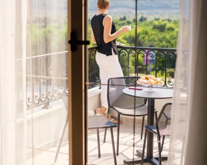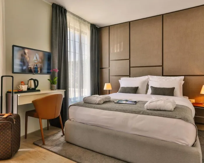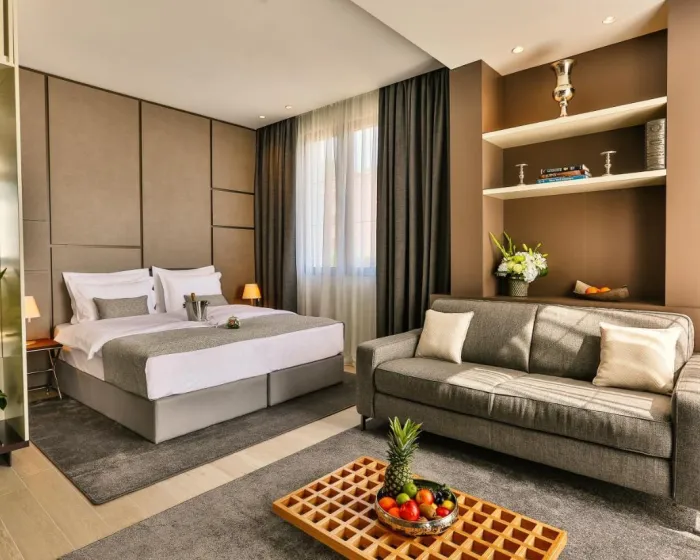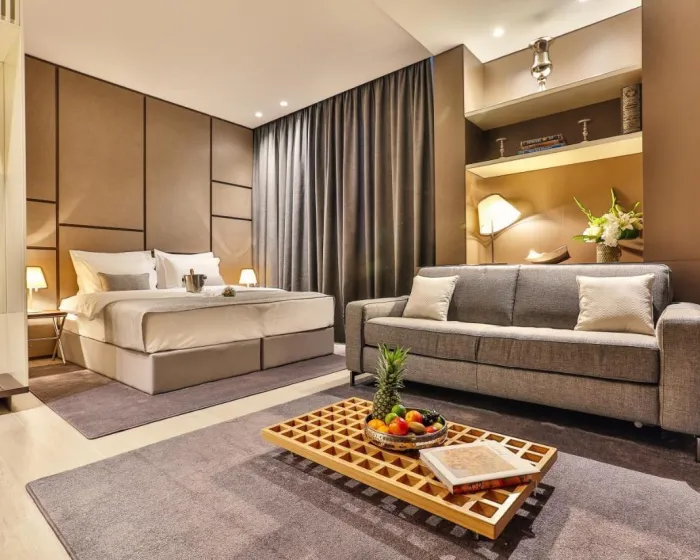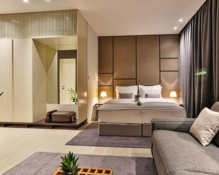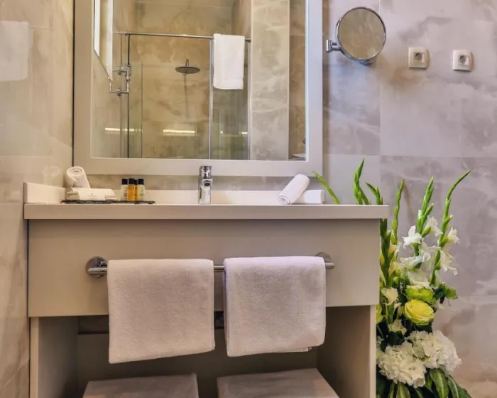 Sobe su opremljene klima uređajem i centralnim grejanjem. Gosti mogu opuštati na balkonu ili terasi. Sve sobe su popločane i uključuju bračni krevet i sofa krevet. Dodatni kreveti se mogu tražiti. Sef, minibar i radni sto su takođe dostupni. Gosti će takođe pronaći aparat za čaj/kafu među standardnim sadržajima. Tu je i set za peglanje i mašina za sušenje. Telefon, televizor sa satelitskim/kablovskim kanalima, adapter za utičnicu i WiFi (bez dodatne naplate) osiguravaju optimalnu udobnost. Papuče su uključene. Fen za kosu i bade mantili se nalaze u kupatilima, koja uključuju tuš kabinu. Kao posebna pogodnost, kupatila su opremljena kozmetičkim proizvodima i odabranim peškirima. Sobe prilagođene osobama sa invaliditetom sa pristupačnim kupatilima su takođe dostupne. Hotel ima porodične sobe i sobe za nepušače.