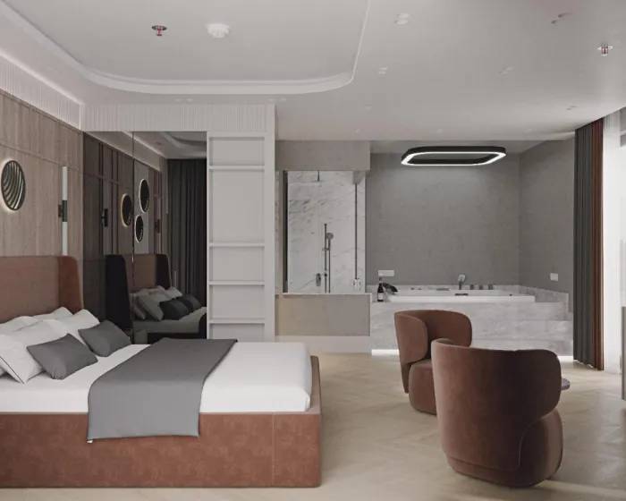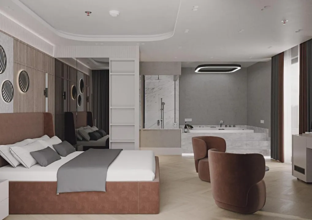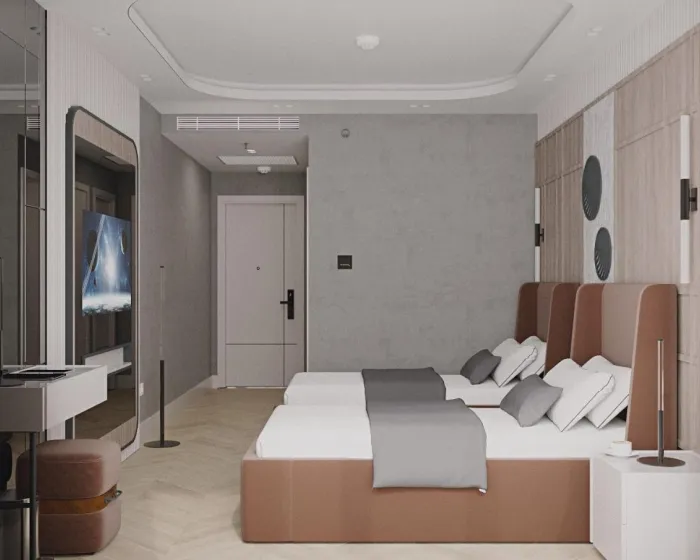 Sobe imaju bračni krevet i sofu. Dodatni kreveti se mogu zatražiti. Sadržaji uključuju mini bar, televizor sa satelitskim kanalima i WiFi. Fen za kosu se nalazi u kupatilima. Porodične sobe su dostupne za roditelje sa decom.