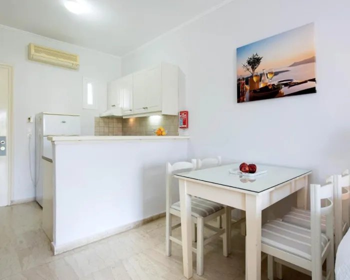 Sobe poseduju kuhinju i kupatilo. Klima uređaj obezbeđuje ugodnu temperaturu. Gosti imaju pogled na planinu sa balkona ili terase, koji su standardni dodaci nekih soba. Sobe uključuju kauč na razvlačenje. Vrednosti se mogu bezbedno čuvati u sefu. Kuhinja sa frižiderom je takođe obezbeđena. Telefon, TV i WiFi (bez dodatne naplate) takođe su obezbeđeni. Kupatila su opremljena tušem i kadom, kao i fenom za kosu. Porodične sobe su dostupne za roditelje sa decom.