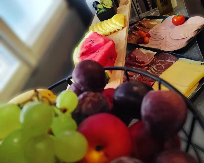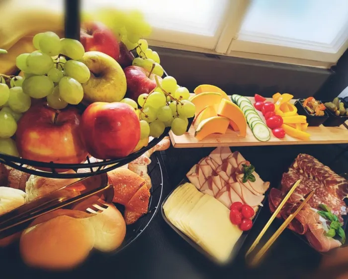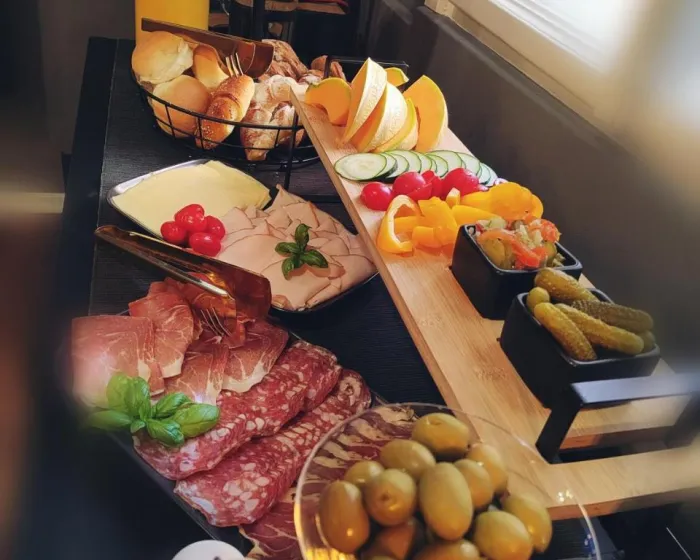 Za kontinentalni doručak dostupan je izbor opcija uključujući sveže pecivo, voće i sok.