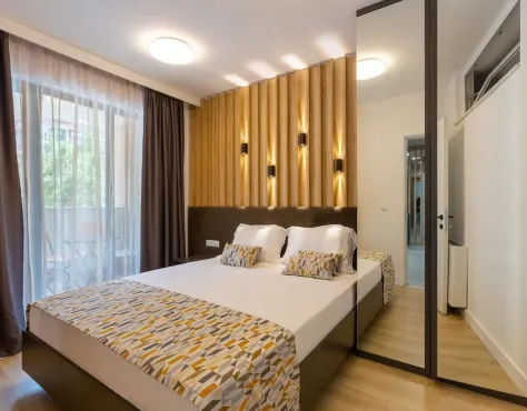 Sobe su opremljene klima uređajem i centralnim grejanjem. Gosti mogu uživati u pogledu na more sa balkona ili terase. Sobe imaju bračni krevet i sofizu na razvlačenje. Dostupne su odvojene spavaće sobe. Kreveti za decu mogu biti zatraženi za mlađe goste. Kuhinjica sa frižiderom je takođe obezbeđena. Opremljene telefonom, satelitskom televizijom i WiFi-jem (bez dodatne naknade), sobe pružaju mnogo načina za goste da ostanu povezani i zabavljaju se. Kupatila su opremljena tušem i kadom, kao i fenom za kosu. Za dodatnu udobnost u kupatilima, gostima je ponuđen izbor peškira.