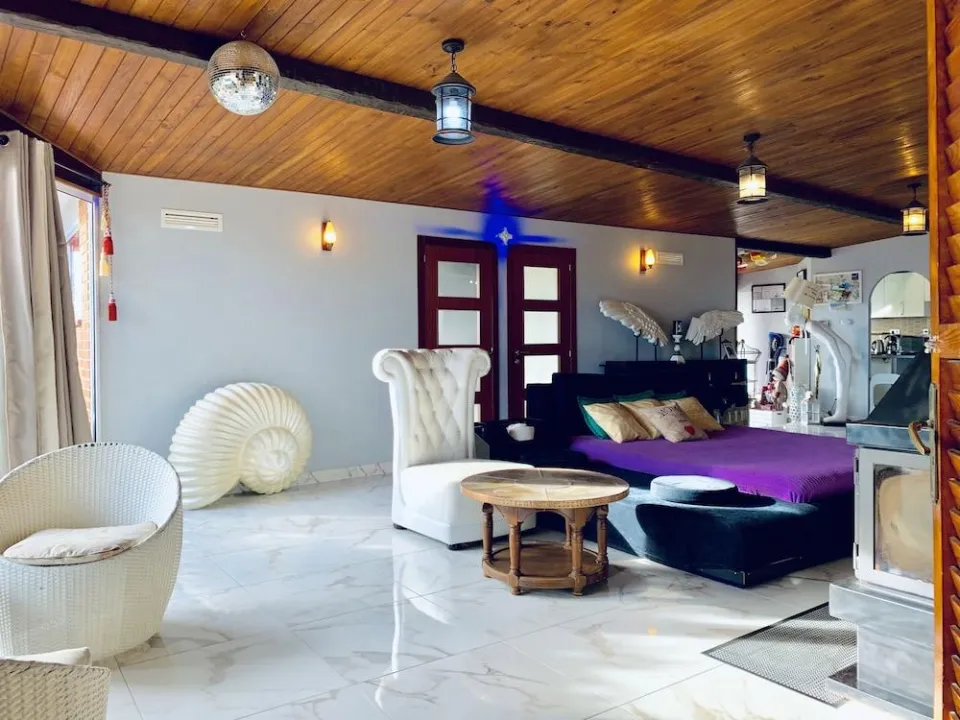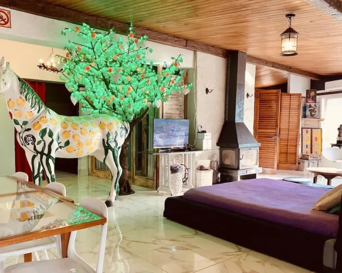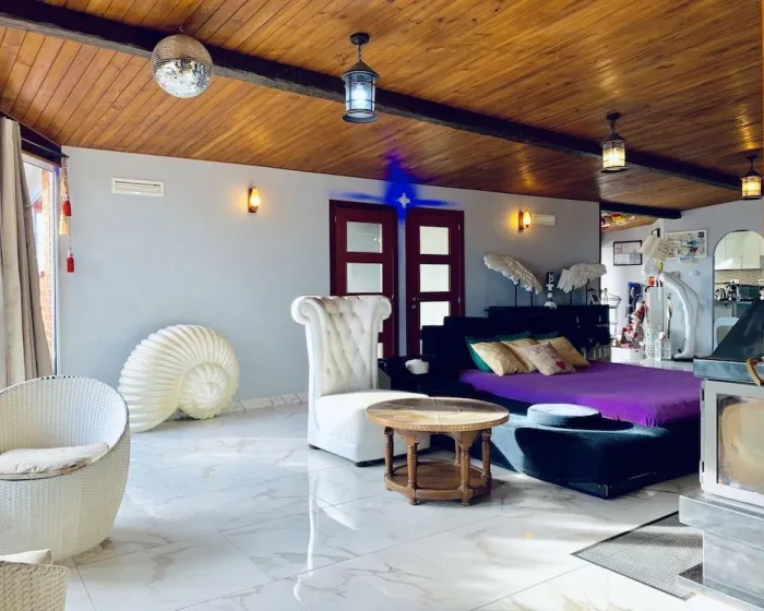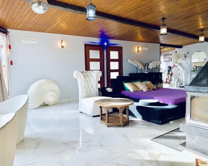 Počastite se boravkom u ovoj individualno dekorisanoj vili, koja ima kamin i privatnu đakuzi kadu. Vaš krevet Select Comfort dolazi sa perjinim pokrivačem i egipatskim pamučnim čaršavima. Ima privatnu nameštenu terasu. Kuhinja je opremljena frižiderom, rernom i šporetom. Privatno kupatilo sa odvojenom kadom i tušem ima hidromasažnu kadu i dizajnerske toaletne potrepštine.