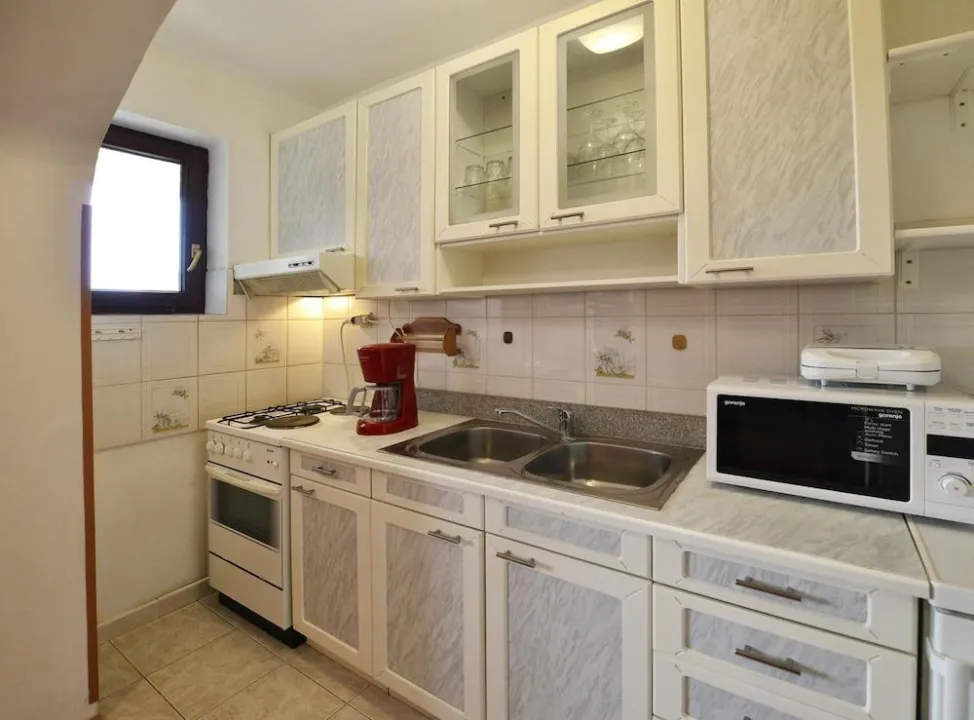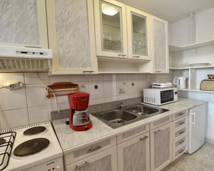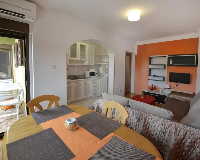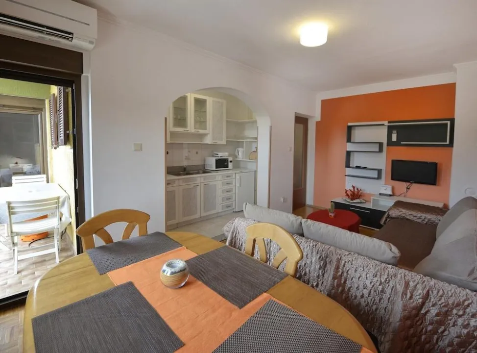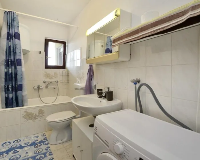 Udobno se smestite u klimatizovanom apartmanu. Tu je i privatni balkon. Opremljenost uključuje veš mašinu/sušilicu i peglu/ dasku za peglanje.