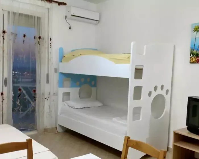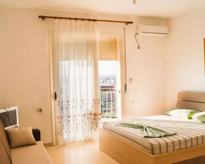 Bella Vista Rezidence Valona se nalazi na oko 1000 metara udaljenosti od uredjene Valona plaže, južno od centra mesta, do kog ima oko 2 kilometra. Vrlo pristupačan smeštaj, kako za parove, tako i za porodice koje su izabrale Valonu kao destinacu za odmor ove godine. Sve smešttajne jedinice imaju u sklopu jedinice i u potpunosti opremljene minii kuhinje, pogodne za spremanje lakih jela. U objeku se može boraviti na usluzi noćenja sa doručkom, a u ponudi je i doplata za polupansion i pun pansion.