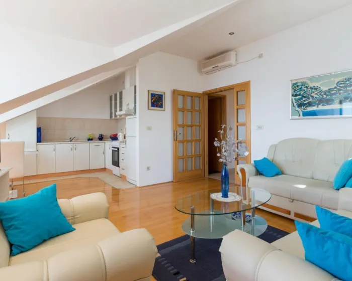 Prostrani apartman je opremljen sa 2 spavaće sobe, 1 kupatilom, posteljinom, peškirima, flat-screen TV-om sa satelitskim kanalima, trpezarijskim prostorom, potpuno opremljenom kuhinjom i terasom sa pogledom na more. Klimatizovana jedinica u objektu ima tuš i garderober. Radi dodatne privatnosti, smeštaj ima zaseban ulaz i zvučnu izolaciju.