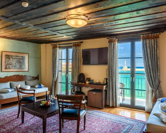 Hotel se nalazi u srcu venecijanske luke Hanje i vrlo blizu (500 m) glavne pijace grada Hanje. Na udaljenosti od 150 m, gosti će pronaći banke i pekare sa tradicionalnim kritskim specijalitetima, kao i mnoge od najboljih restorana, taverni i noćnog života u gradu. Dodatno, centralna autobuska stanica u Hanji je udaljena samo 300 m. Aerodrom Suda je udaljen oko 16 km od hotela.
