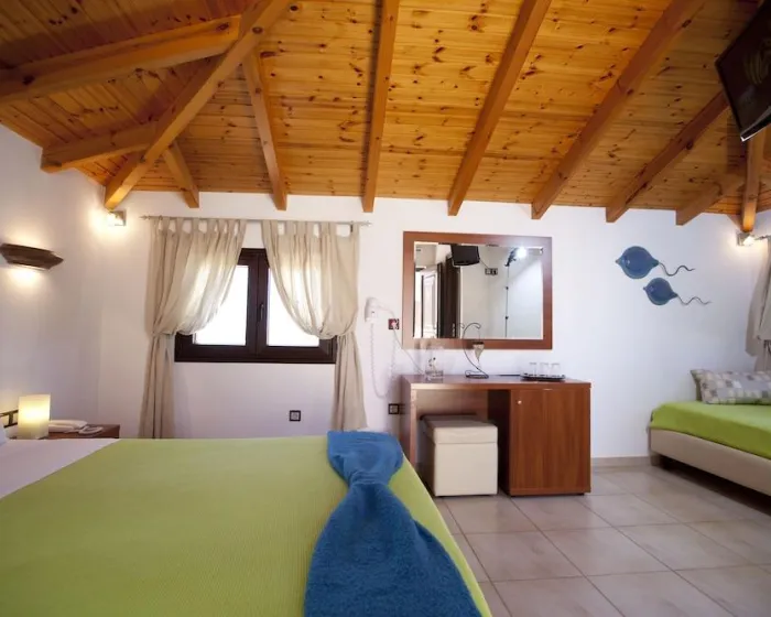 U nekim sobama predivna atmosfera dodatno je naglašena pogledom na more. Sobe imaju bračni krevet i sofa krevet. Dodatni kreveti mogu biti zatraženi. U sobama gosti će pronaći televizor, sef i WiFi (bez dodatne naplate). Foen je obezbeđen u kupatilima. Porodične sobe su dostupne za roditelje sa decom.