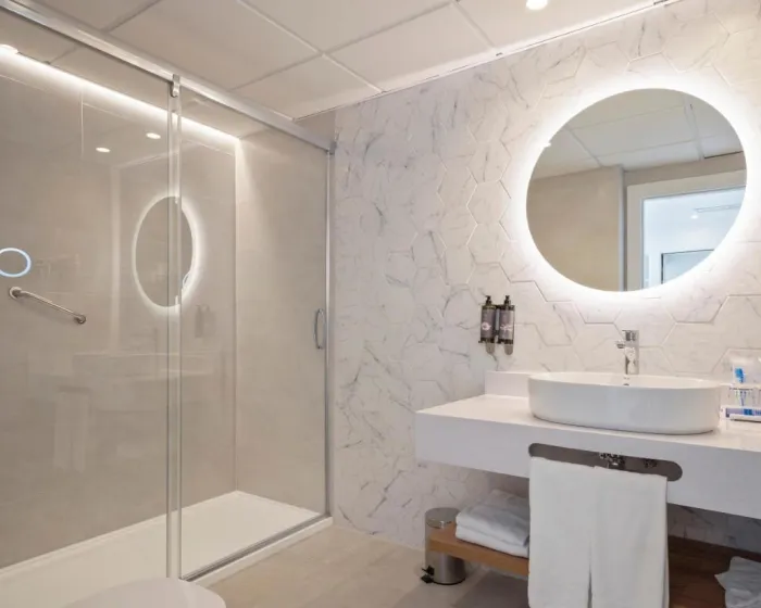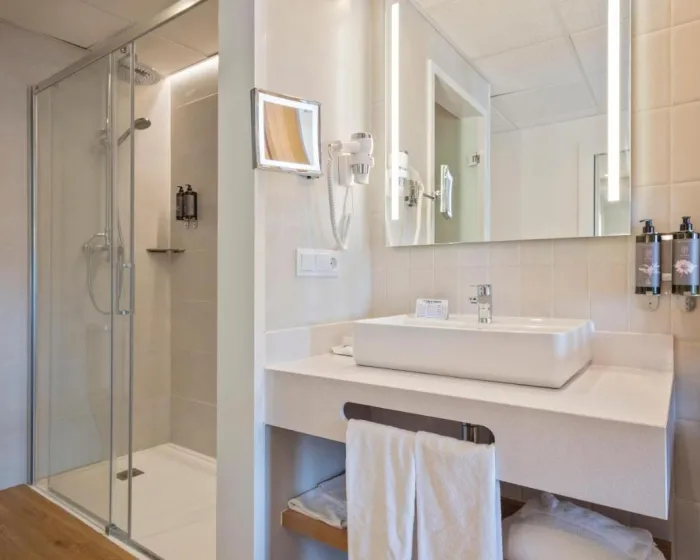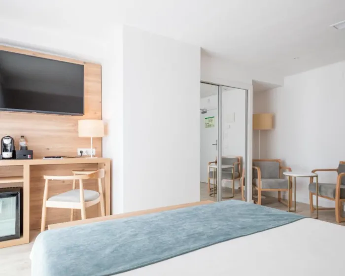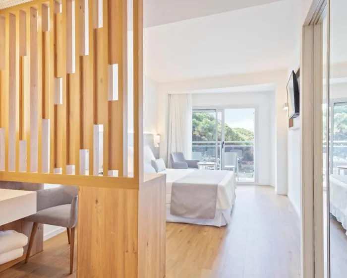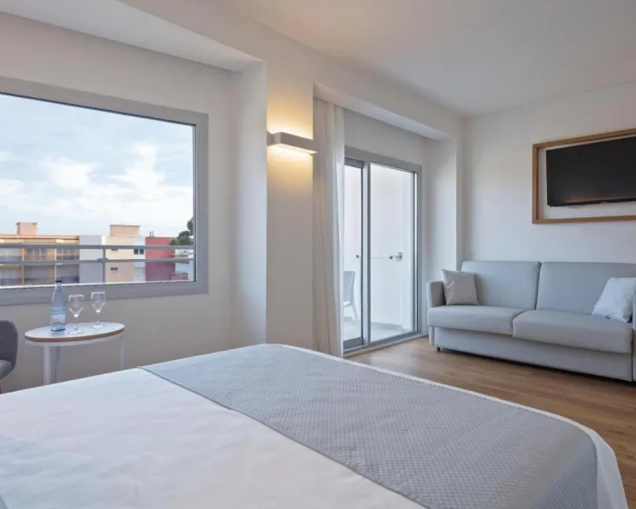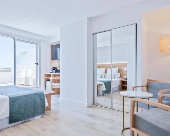 Klima uređaj i centralno grejanje osiguravaju da sobe održavaju udobne temperature. U većini jedinica, gosti mogu uživati u delimičnom pogledu na more sa balkona ili terase. Neke jedinice nude prelep pogled na more. Sobe imaju bračni krevet i sofu na rasklapanje. Na raspolaganju su i sef, minibar i radni sto. Direktni telefonski poziv, televizor sa satelitskim/kablovskim kanalima i WiFi (bez dodatne naknade) pružaju sve neophodno za udoban odmor. Kupatila su opremljena tušem i fenom za kosu. Za dodatnu udobnost u kupatilima, gostima su na raspolaganju kozmetički proizvodi. Mogu se rezervisati 4 sobe prilagođene osobama u kolicima. Hotel ima 10 porodičnih soba i soba za nepušače.