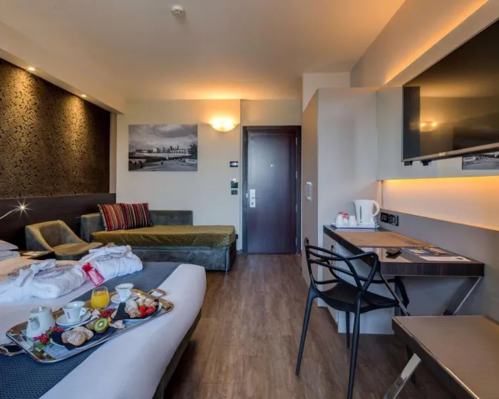 Klima uređaj i centralno grejanje osiguravaju da sobe održavaju udobne temperature. Balkon je među standardnim sadržajima nekih soba. Sobe uključuju bračni krevet. Dodatni kreveti mogu biti zatraženi. Na raspolaganju su i sef, mini bar i radni sto. Dodatne mogućnosti uključuju mini frižider i aparat za kafu/čaj. Pegla je obezbeđena radi gostove praktičnosti. Takođe su obezbeđeni telefon, satelitska televizija i WiFi. Kupatila su opremljena tušem i kadom. Fen, bade mantili i telefon su dostupni za svakodnevnu upotrebu. Kao dodatna pogodnost, kupatila obezbeđuju kozmetičke proizvode. Gosti mogu rezervisati sobe prilagođene osobama sa invaliditetom sa pristupačnim kupatilima za invalide. Hotel ima porodične sobe i sobe za nepušače.