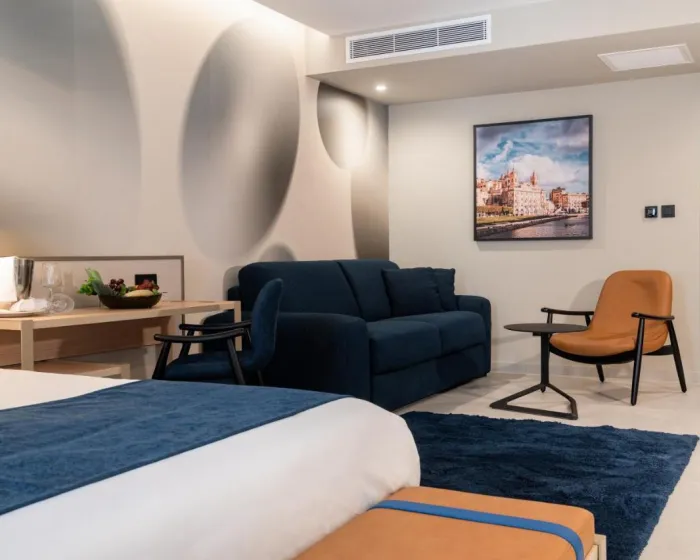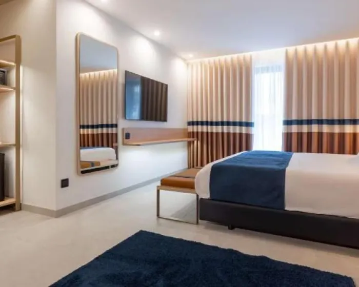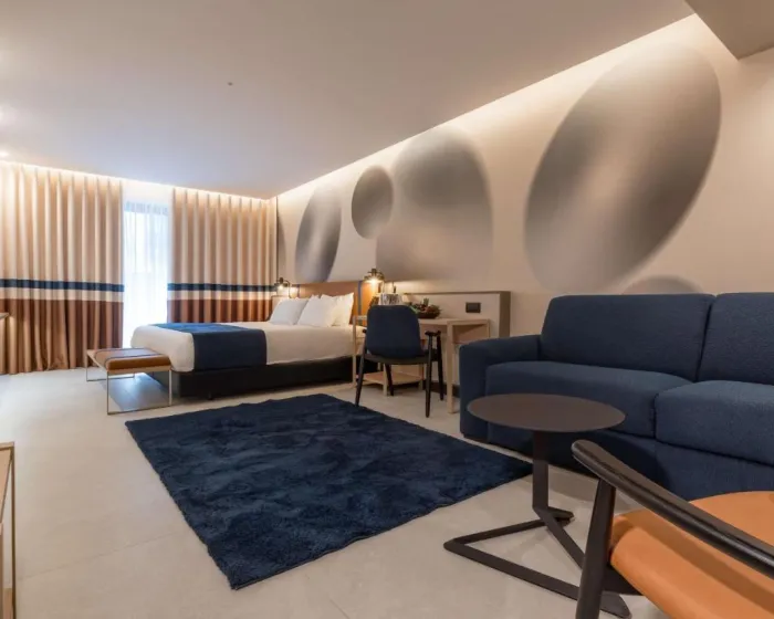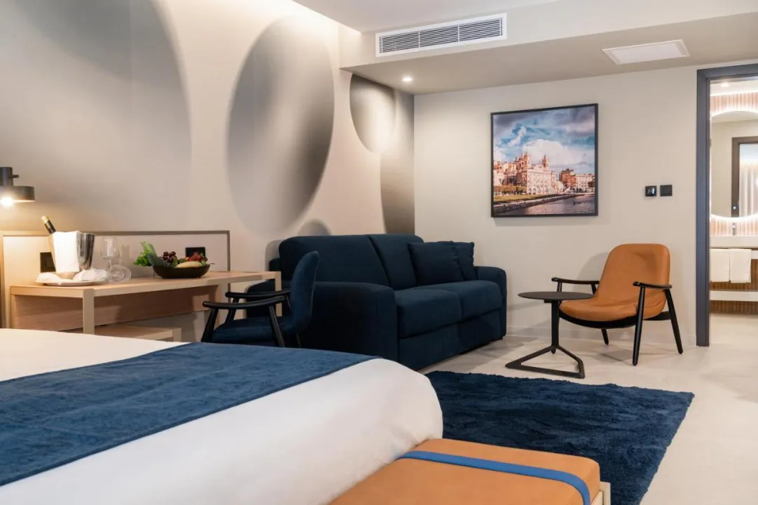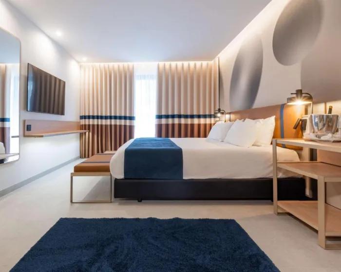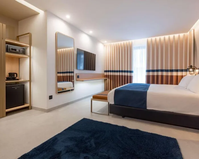 Sve sobe imaju klima uređaj, centralno grejanje i ventilator. Većina soba ima balkon ili terasu, a gostima je dostupan pogled na grad ili more. Sobe su opremljene bračnim ili queen-size ležajem, uz mogućnost dodatnih kreveta. U sobama se nalaze sef, mini bar, radni sto, frižider, mikrotalasna pećnica i aparat za čaj/kafu. Gosti takođe mogu koristiti set za peglanje. Za udobnost su obezbeđeni telefon, satelitska TV, radio i bežični internet. Kupatila su opremljena kadom ili tušem, fenom, kozmetičkim proizvodima i peškirima. Dostupne su i sobe prilagođene osobama sa invaliditetom. Hotel nudi porodične sobe, sobe za nepušače i sobe za pušače.