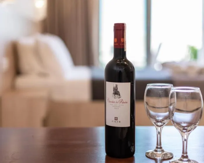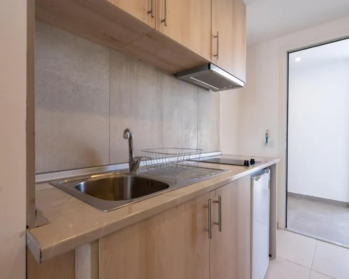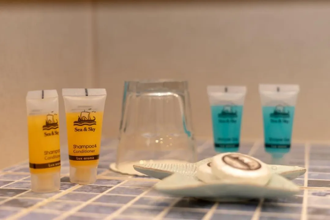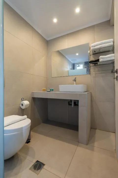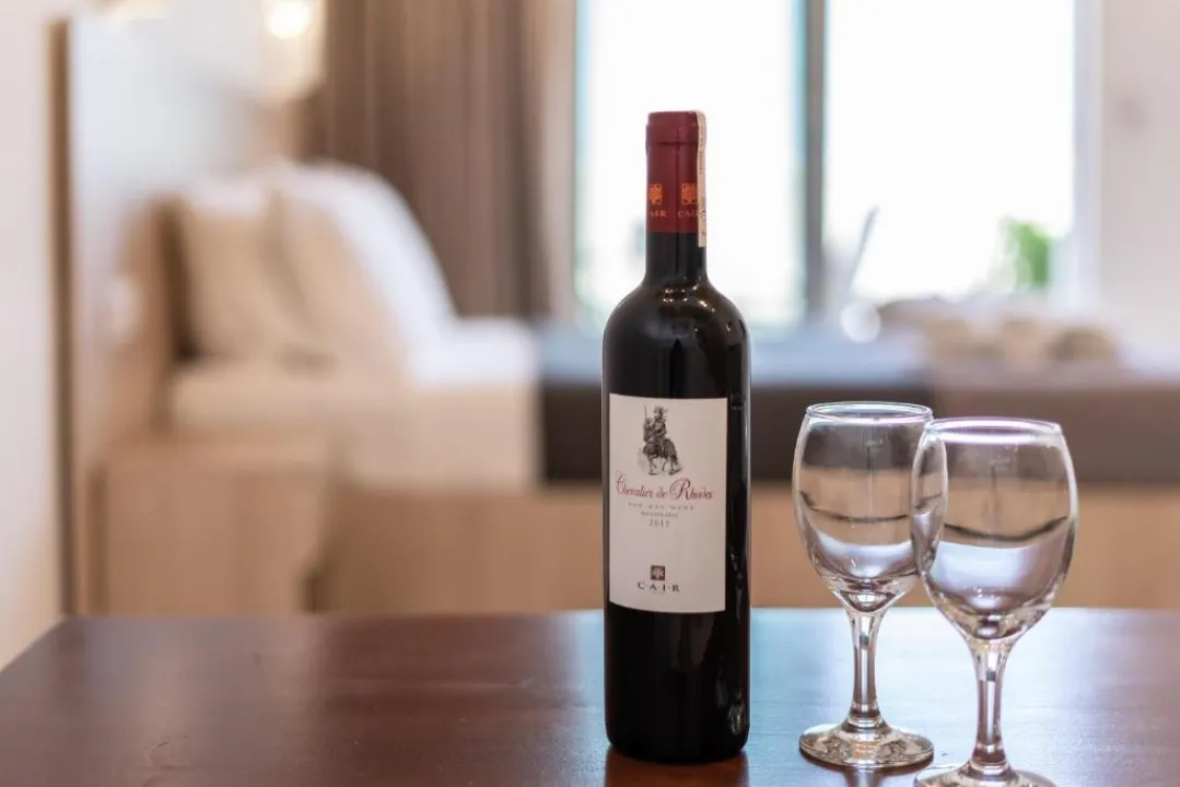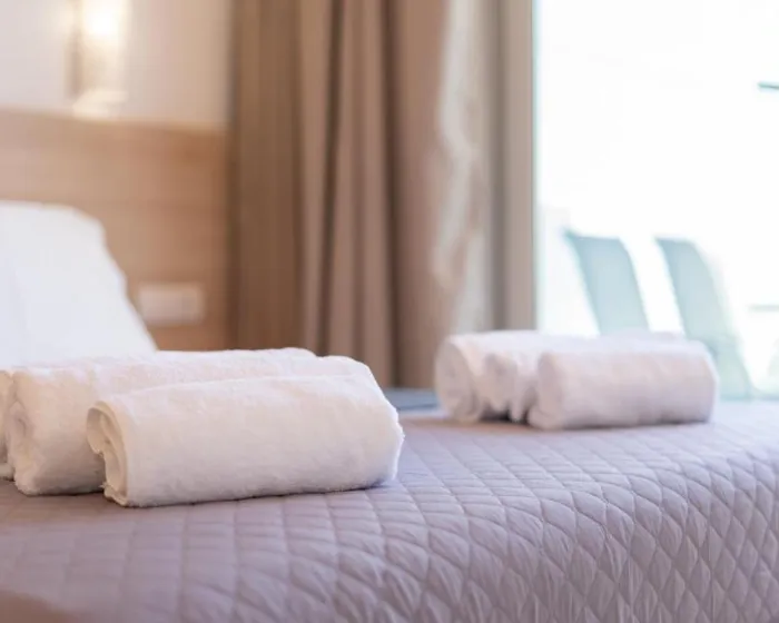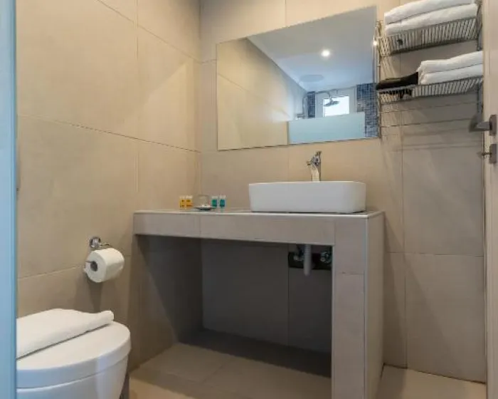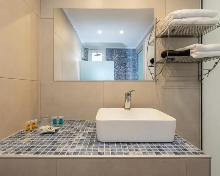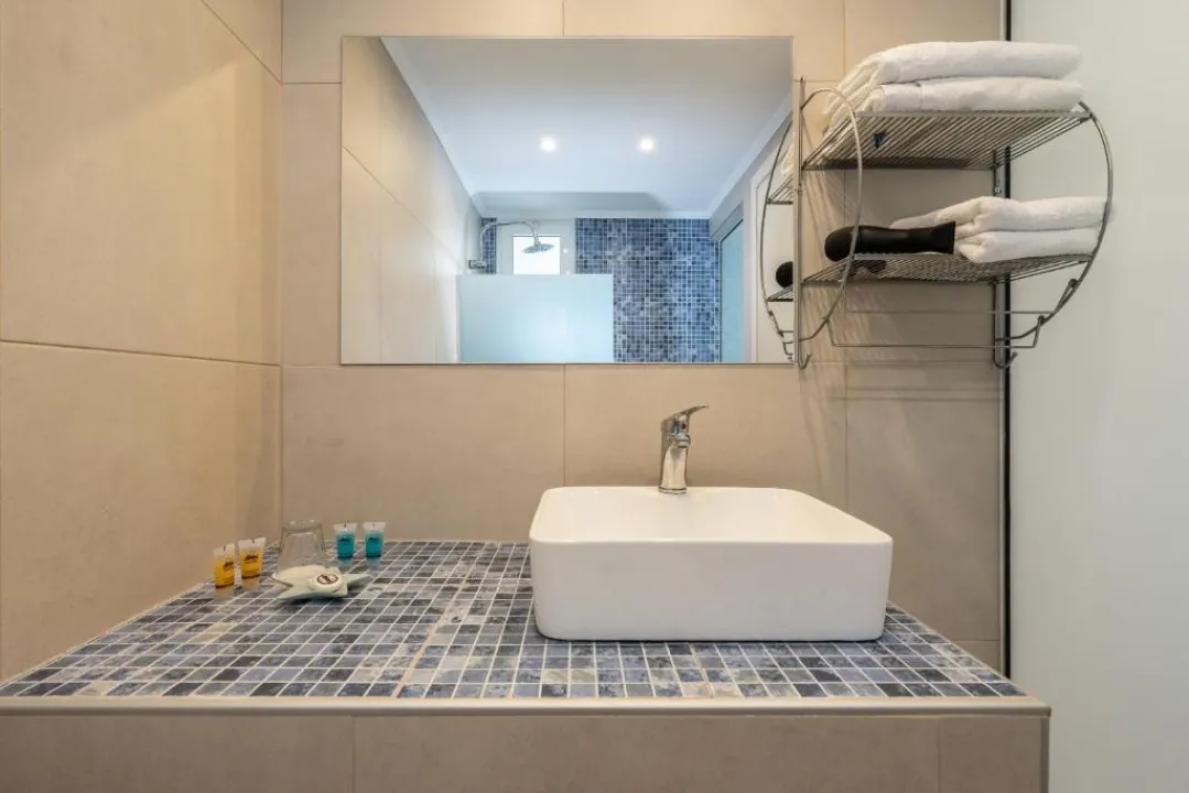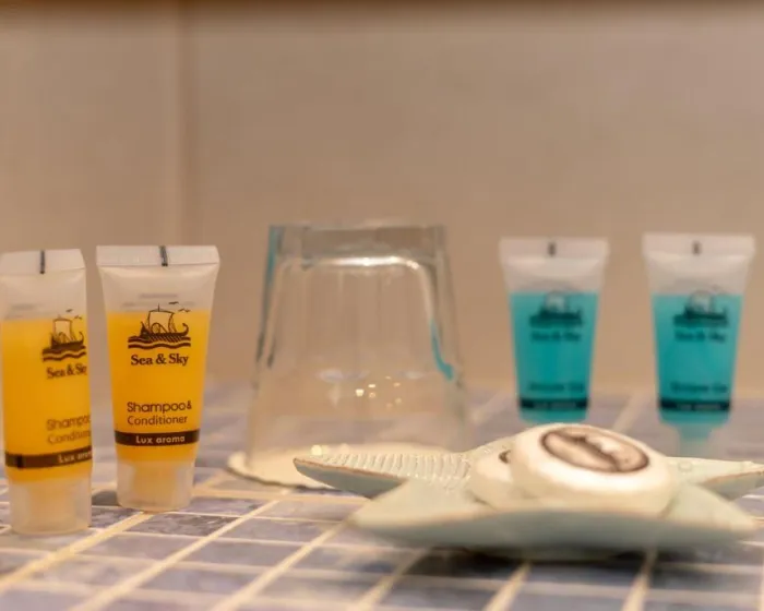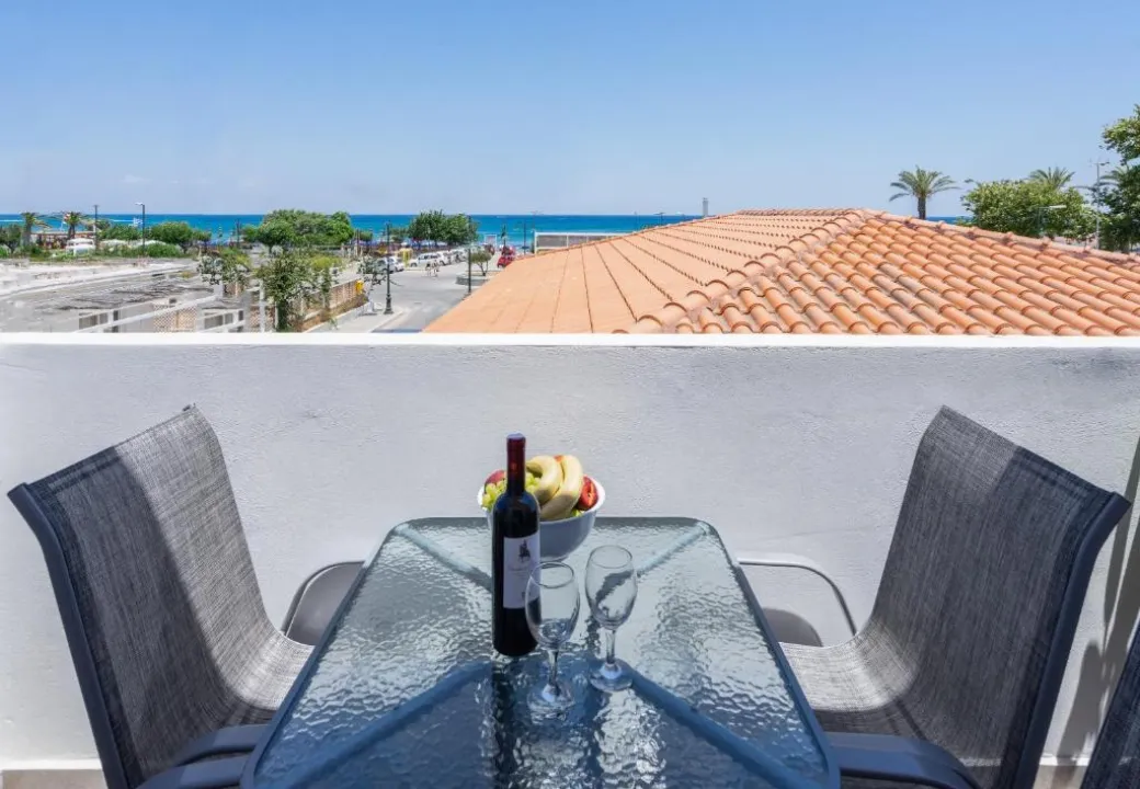 Klima uređaj i centralno grejanje obezbeđuju udobne temperature u sobama. Gosti mogu uživati u pogledu na more sa balkona ili terase. Sobe imaju bračni krevet i sofu na razvlačenje. Mogu se rezervisati odvojene spavaće sobe. Dečiji krevetići mogu biti zatraženi za mlađe goste. Dragocenosti se mogu sigurno čuvati u sefu. Kuhinja dolazi sa frižiderom, mini frižiderom i aparatima za kafu/čaj. Telefon, TV i WiFi (bez dodatne naknade) obezbeđuju sve neophodno za udoban odmor. Kupatila su opremljena tušem i fenom za kosu. Hotel ima sobe za nepušače.