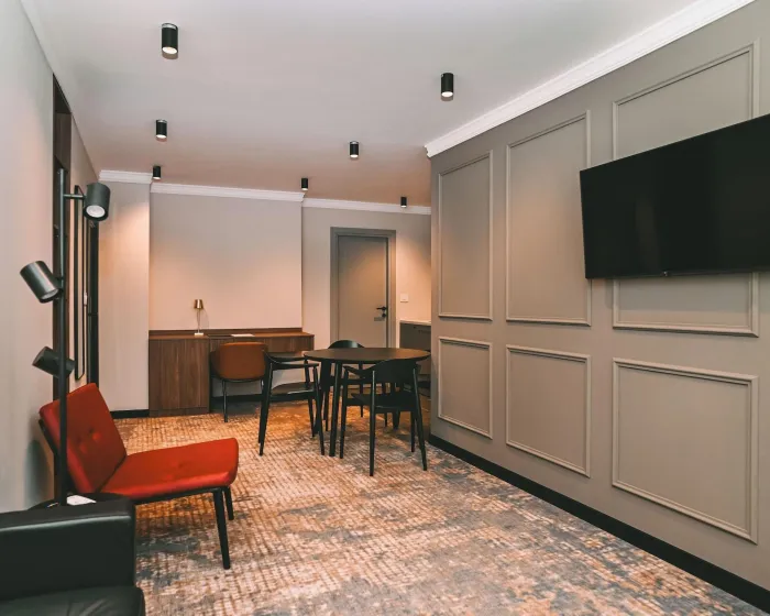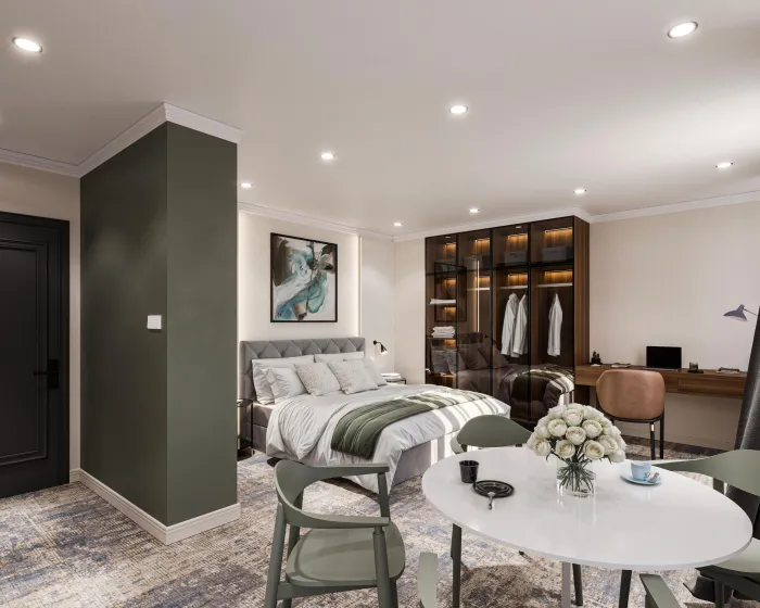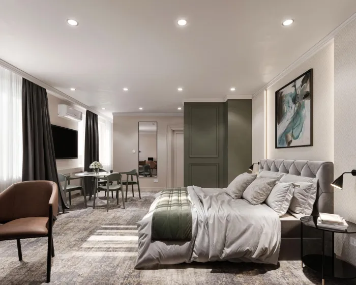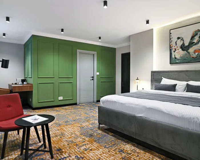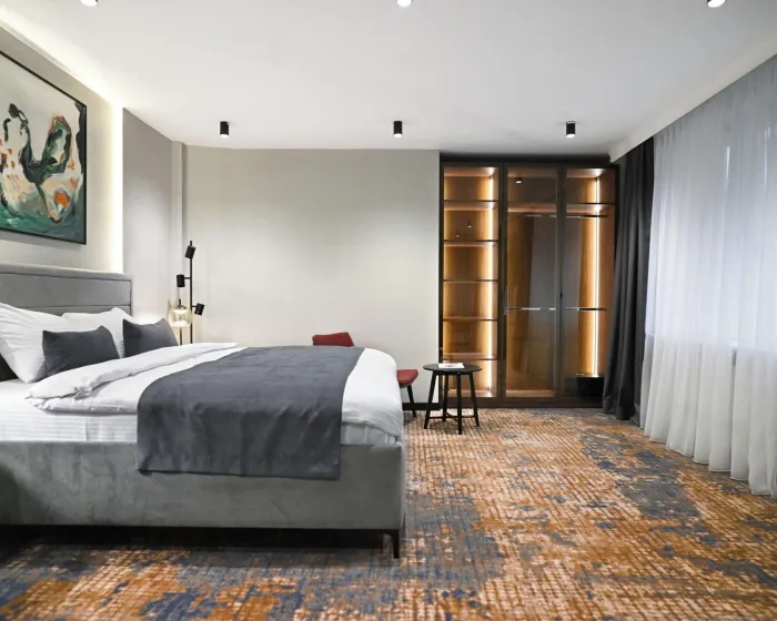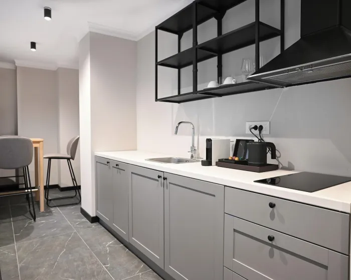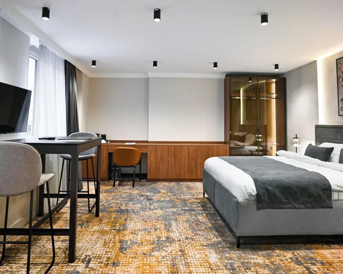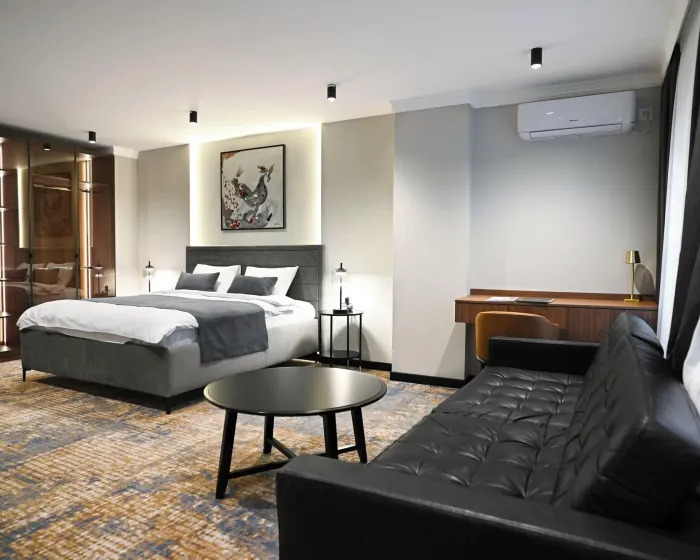 Crni Galo Residences je luksuzni boutique apart-hotel smešten u srcu Beograda. Ušuškan u odličnoj centralnoj lokaciji, naći ćete se na korak od ikoničnih znamenitosti Beograda, živahnih trgovačkih zona i izvanrednih restorana. Počastite sebe premium brendovima toaletnih proizvoda, uživajte u visokobrzoj internet vezi i opustite se u udobnosti svog mirnog i luksuznog apartmana upravo u srcu grada. U Crnom Galu imamo sve pogodnosti za savršen boravak.