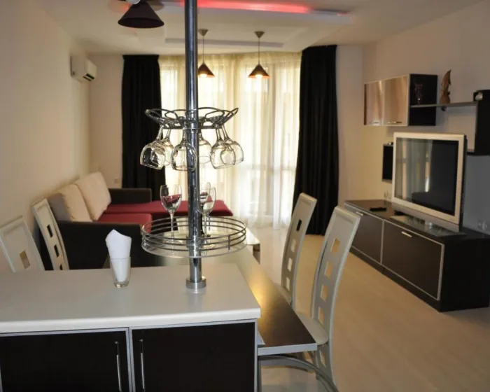 U dnevnoj sobi se nalazi TV sa ravnim ekranom i kablovskim kanalima, kao i prostor sa sofom za sedenje. Takođe se nudi i otvorena kuhinja sa trpezarijom. Kupatilo ima tuš. Na raspolaganju je i balkon.