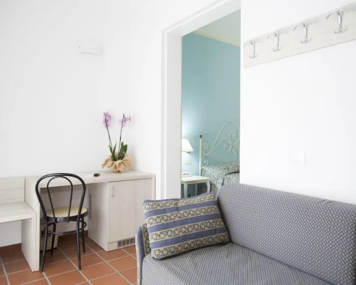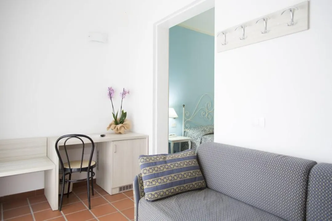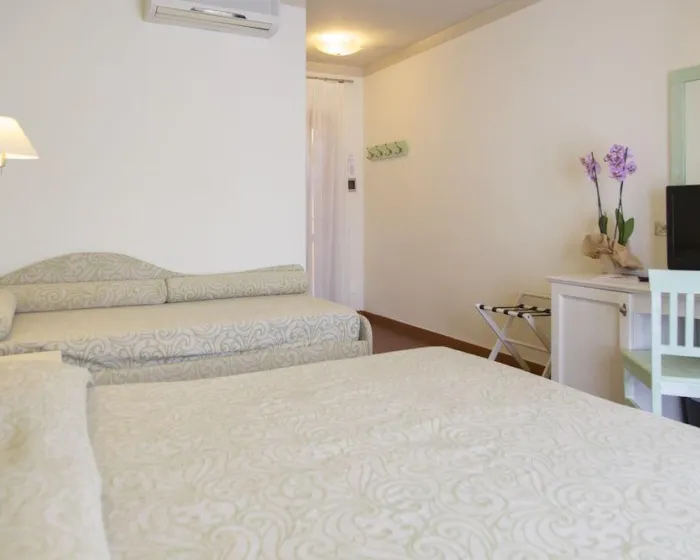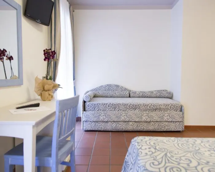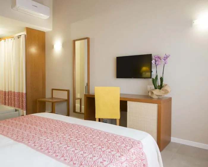 Klima uređaj i centralno grejanje obezbeđuju da sobe održavaju udobnu temperaturu. Gosti mogu uživati u pogledu na more sa balkona ili terase. Sobe imaju bračni krevet, krevet queen size ili sofa krevet. Dostupne su odvojene spavaće sobe. Kreveti za decu i dodatni kreveti mogu se zatražiti za mlađe goste. Sef i mini bar su takođe dostupni. Gosti će takođe pronaći i frižider među standardnim sadržajima. Telefon, TV i WiFi pružaju sve neophodno za udoban odmor. Fen i telefon su dostupni u kupatilima, koja su opremljena tuš kabinom. Hotel ima porodične sobe i sobe za nepušače.
