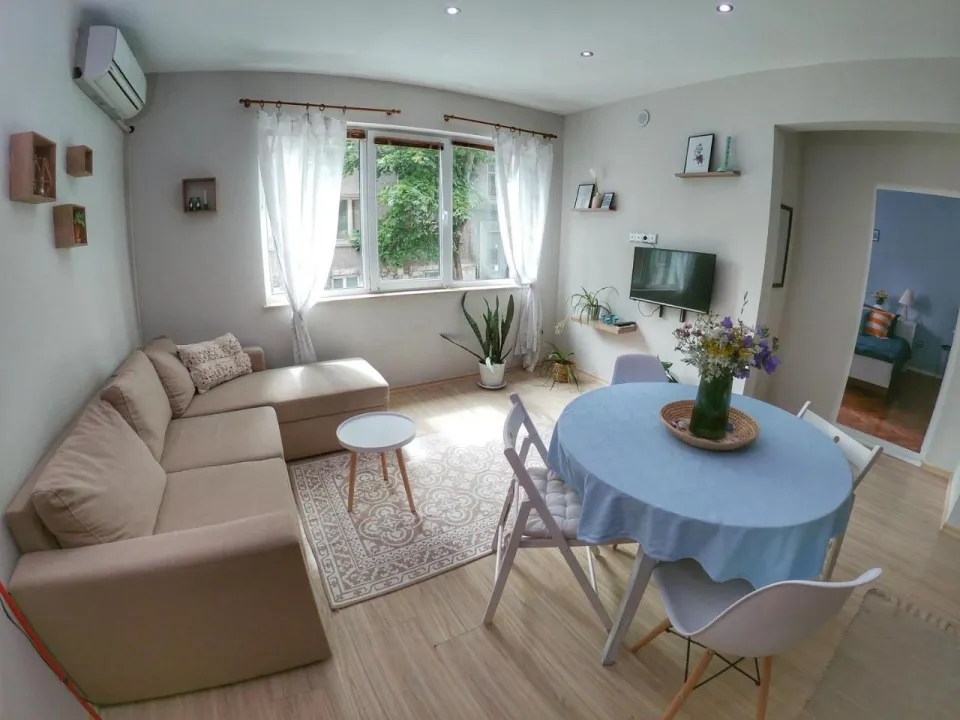 Nudi besplatan WiFi i pogled na grad, U plavom, za 4 osobe, 5 minuta udaljen od plaže je smeštaj koji se nalazi baš u srcu Varni, na samo 600 metara od Varna plaže i 1.7 km od Bunite plaže. Objekat ima pogled na mirnu ulicu i nalazi se na 700 metara od Varna katedrale i na manje od 1 km od gradske kuće Varna. Objekat je za nepušače i nalazi se na 600 metara od Centar železničke stanice Varna.