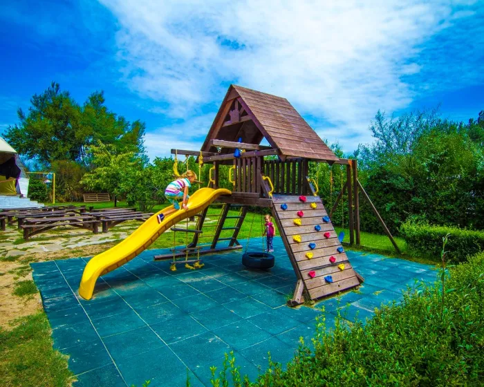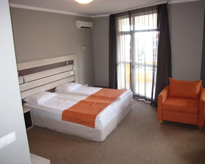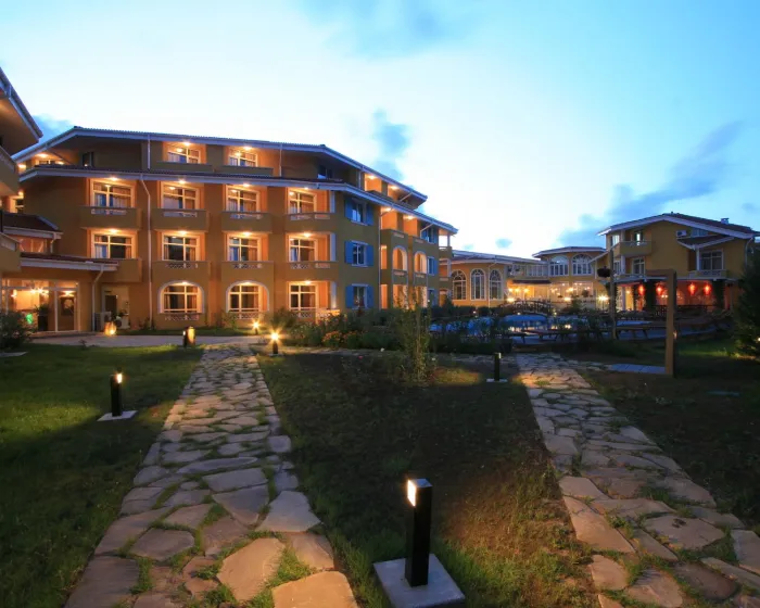 Hotel ima unutrašnji i spoljašnji bazen, uz poseban deo za decu. Bar pored bazena nudi osvežavajuća pića, a đakuzi pruža dodatno opuštanje. Sunčana terasa sa ležaljkama i suncobranima idealna je za odmor. Sportovi i aktivnosti uključuju vožnju bicikla, planinski biciklizam, tenis, odbojku na plaži, odbojku i nordijsko hodanje. U ponudi su i brojni vodeni sportovi, kao što su jedrenje na dasci, vožnja skuterom na vodi, pedaline, banana čamac, kanu, kajak, ronjenje, ronjenje sa maskom i aquafit. Unutrašnji sportski sadržaji obuhvataju teretanu, stoni tenis, pikado, kalisteniku i aerobik, a uz doplatu badminton. Wellness centar nudi spa, saunu, parno kupatilo, hamam i masaže. Zabavni sadržaji uključuju animacije, dečiji klub i dečiji disko.