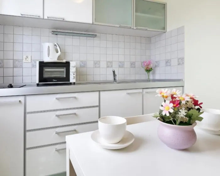 Jedinice imaju parketne podove i sadrže potpuno opremljenu kuhinju sa frižiderom, trpezariju, flat-screen TV sa satelitskim kanalima, i privatno kupatilo sa tušem i fenom za kosu. Neke jedinice imaju prostor za sedenje i/ili terasu sa spoljnom trpezarijom. U apartmanskim kompleksu, jedinice imaju posteljinu i peškire.