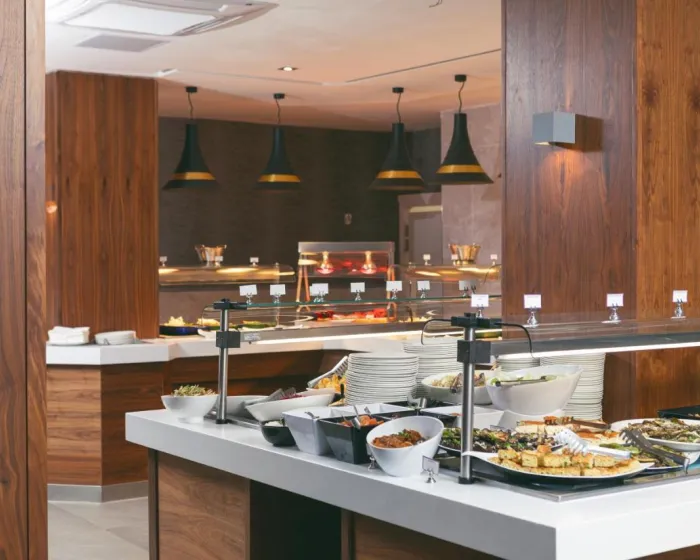U ponudi ishrane je polupansion. Doručak se služi kontinentalno ili u vidu bifea. Ručak se nudi kao set meni ili a la carte sa predjelima, salatama i desertima. Večera se služi u vidu bifea sa predjelima, salatama i desertima. Gostima su na raspolaganju bife restoran sa terasom, koji nudi mediteranska i bezglutenska jela, kao i dva bara, kafeterija i bar pored bazena. U ponudi pića nalaze se voda, bezalkoholna pića, kafa i čaj, pivo i vino.