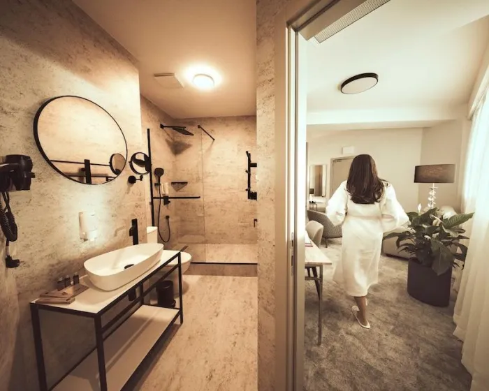 Osećajte se kao kod kuće u jednoj od 19 individulano dekorisanih soba za goste, sa minibarom i aparatom za espreso. Vaš krevet sa memorijskom penom dolazi sa premium posteljinom. Privatne kupatila sa tušem imaju kišnu tuš glavu i fen za kosu.