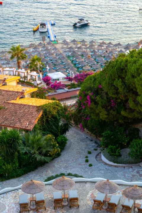 Bougainville Bay Resort & SPA se nalazi na plaži letovališta Sarande, nedaleko od centra grada. Ljubazno osoblje na recepciji rado odgovara na sva pitanja. Usluge i sadržaji uključuju skladište prtljaga, sef, menjačnicu i bankomat. Bežični internet dostupan je u zajedničkim prostorijama. Turistički desk pruža pomoć pri rezervaciji izleta. Hotel poseduje različite sadržaje prilagođene osobama sa invaliditetom, uključujući lift i pristupačne prostorije. U okviru objekta nalaze se supermarket i prodavnica suvenira, a dvorište hotela krase igralište i prelepa bašta. Dodatni sadržaji uključuju kiosk sa novinama, TV salu i igraonicu. Gosti koji dolaze automobilom mogu koristiti garažu ili parking. Na raspolaganju su i usluge obezbeđenja 24 sata, prevoz, posluga u sobi, pranje veša, frizerski salon, samouslužna perionica i hotelski shuttle prevoz. Za istraživanje okoline dostupna je usluga iznajmljivanja bicikala.