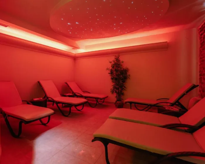 Wellness i spa centar, kao i većina hotelskih soba, pružaju pogled na tipičan centralni istarski pejzaž, dolinu reke Mirne i čuvene vinograde Motovuna.
