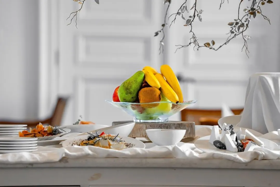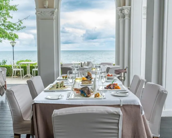 Oblast za jelo uključuje restoran i bar. Osvježavajući napici u baru na plaži su savršen način da uživate u toplom vremenu. Hranjivi doručak se služi svakodnevno. Posebna jela, uključujući dijetna jela, takođe su dostupna. Hotel takođe nudi posebne opcije keteringa.