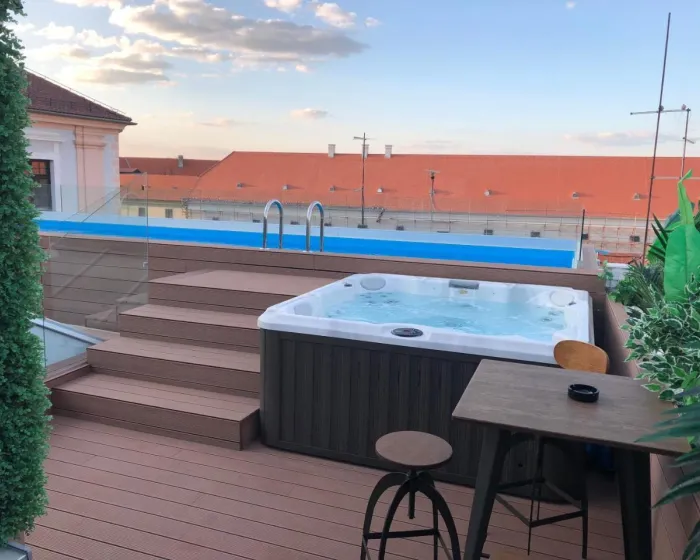 Prijatno zagrejana voda na otvorenom bazenu garantuje udobno plivanje. Uživanje u lepom vremenu moguće je na terasi. Đakuzi u bazenskom prostoru obećava potpunu relaksaciju. Postoji mnogo načina za opuštanje ili ostanak aktivan u hotelu, uključujući spa i saunu.
