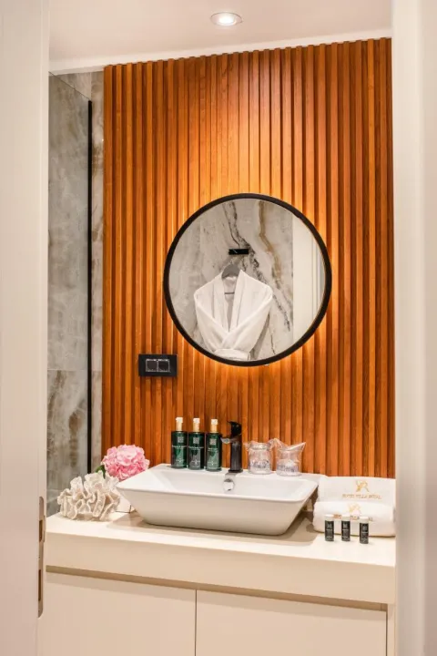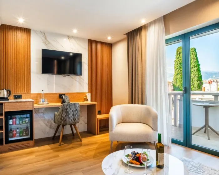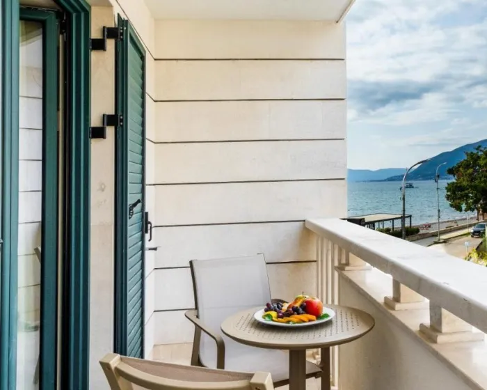 Nalazi se na samoj obali i ima privatnu šljunkovitu plažu, Boutique Hotel Villa Royal nudi à-la-carte restoran sa terasom i aperitiv bar. Centar Tivta može se stići u šetnji od 7 minuta, dok su skriveni plaži udaljeni samo 5 minuta.