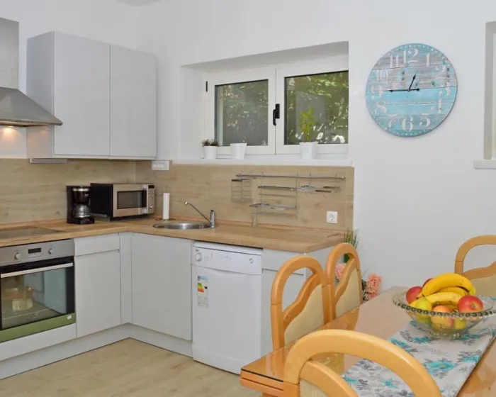 Prostrani apartman je opremljen sa 3 spavaće sobe, 2 kupatila, posteljinom, peškirima, flat-screen TV-om, trpezarijskim delom, potpuno opremljenom kuhinjom i terasom sa pogledom na more. Ova jedinica poseduje klima uređaj, sobu za presvlačenje i kamin. Objekat ima i spoljni prostor za obedovanje.