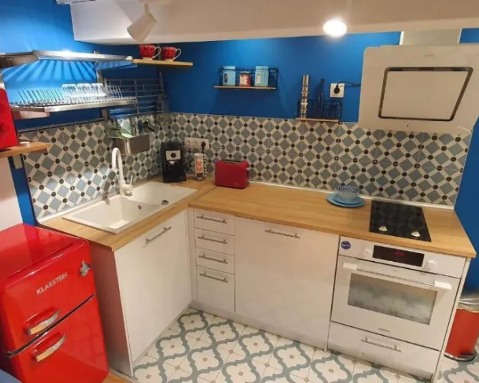 Klimatizovani apartman sastoji se od 1 spavaće sobe, dnevnog boravka, potpuno opremljene kuhinje sa rernom i aparatom za kafu, kao i 1 kupatila sa tušem i besplatnim toaletnim priborom. Peškiri i posteljina su dostupni u apartmanu. Smestaj je za nepušače.