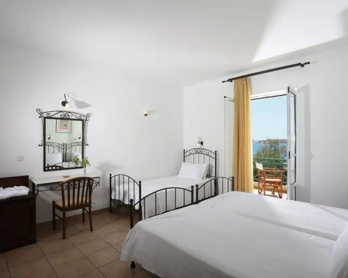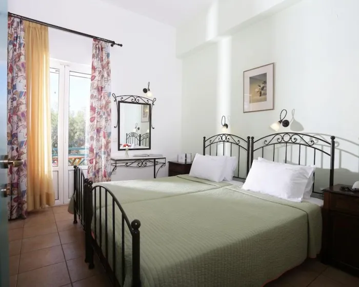 Sobe su opremljene klima-uređajem i centralnim grejanjem kako bi se osigurala prijatna temperatura. Većina jedinica ima balkon sa pogledom na more, savršen za opuštanje. Sobe su opremljene bračnim ili king-size ležajem, a na zahtev su dostupni i dodatni ležajevi. Sef omogućava sigurno čuvanje ličnih stvari, dok frižider spada u standardnu opremu. Gostima je na raspolaganju i aparat za peglanje pantalona. Sobe su opremljene televizorom i besplatnim WiFi internetom. Kupatila su opremljena tušem i fenom za kosu. Hotel raspolaže porodičnim i sobama za nepušače.