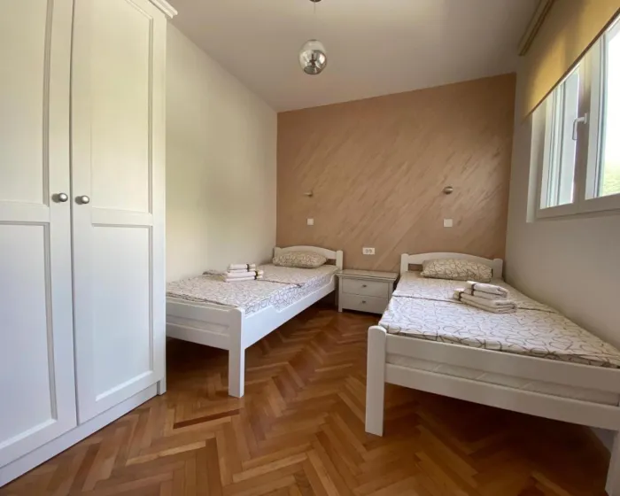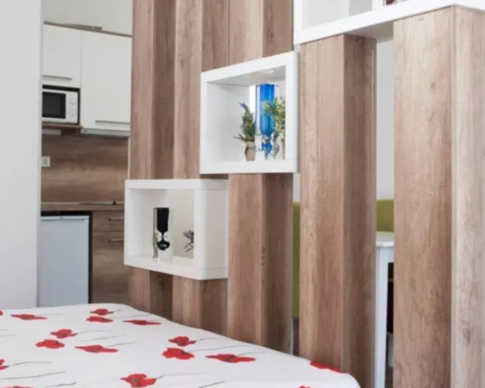 Klima uređaj i centralno grejanje obezbeđuju da sobe održavaju udobnu temperaturu. Gosti mogu opuštajući uživati u pogledu na more sa terase ili privatnog balkona nekih soba. Sobe imaju bračni krevet, krevet veličine queen ili kauč na razvlačenje. Dostupne su odvojene spavaće sobe. Dodatni ležajevi mogu biti zatraženi. Kuhinja dolazi sa frižiderom i mikrotalasnom pećnicom. Telefon, televizor sa satelitskim/kablovskim kanalima i WiFi (bez dodatne naknade) pružaju sve neophodno za udoban odmor. Kupatila su opremljena tušem i fenom za kosu. Kao poseban dodatak, kupatila su takođe opremljena kozmetičkim proizvodima i izborom peškira. Kompleks ima sobe za nepušače.
