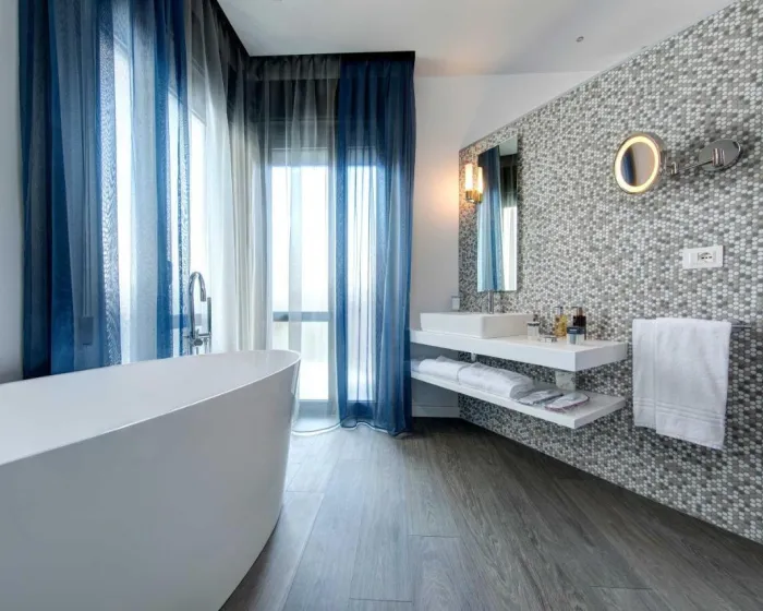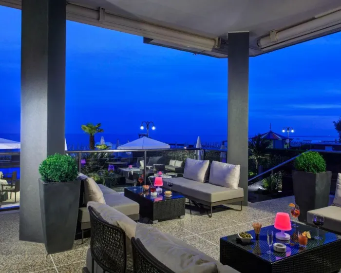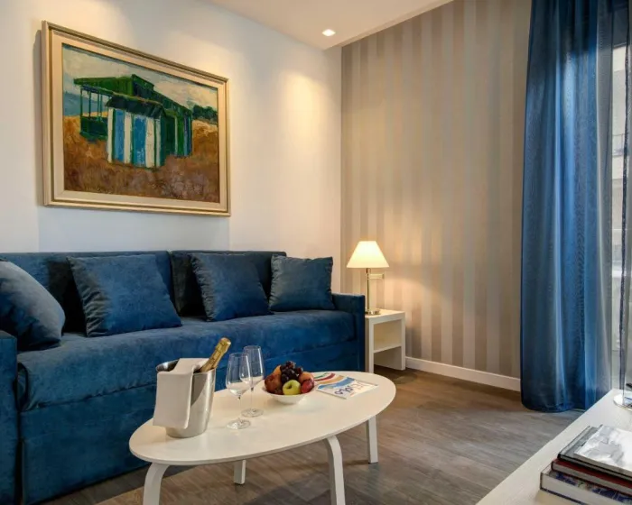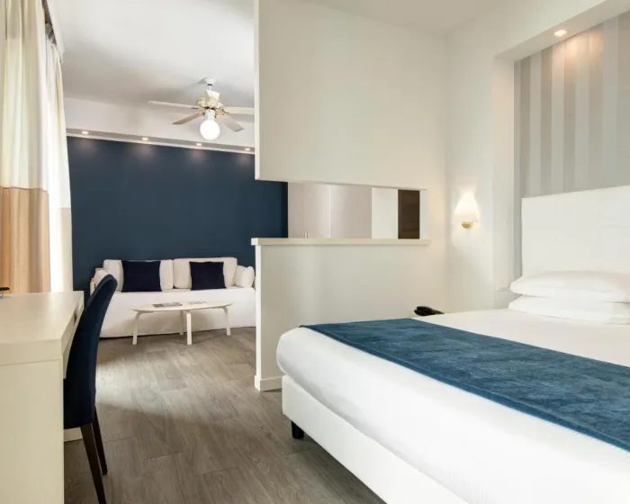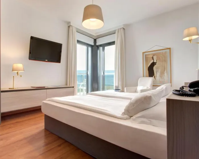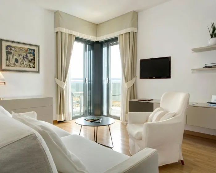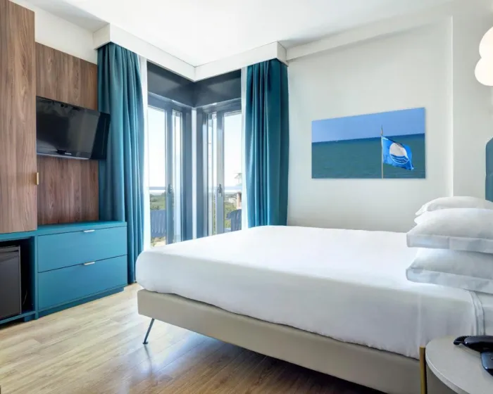 Klima uređaj osigurava da sobe zadržavaju idealnu temperaturu. Gosti mogu uživati u pogledu na more sa balkona ili terase. Sobe imaju bračni krevet, krevet queen size ili kauč na razvlačenje. Dostupne su odvojene spavaće sobe. Posteljina za decu i dodatni kreveti mogu se zatražiti za mlađe goste. Tu su i sef, mini bar i radni sto. Gosti će takođe pronaći mini frižider među standardnim sadržajima. Telefon, TV i WiFi (bez dodatnih troškova) pružaju sve neophodno za udoban odmor. Kupatila su opremljena tušem i fenom za kosu. Hotel ima porodične sobe i sobe za nepušače.