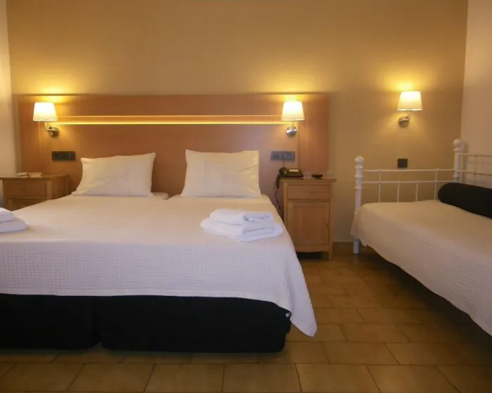 Sobe su opremljene klima uređajem i centralnim grejanjem. Balkon ili terasa je među standardnim sadržajima nekih soba. Sobe imaju bračni krevet i sofu. Dodatni kreveti mogu biti zatraženi. Sef i minibar su takođe dostupni. Kuhinja sa frižiderom je takođe obezbeđena. Set za peglanje je dostupan radi ugodnosti gostiju. Direktno birani telefon, TV, radio i WiFi su takođe obezbeđeni. Fen za kosu i telefon su dostupni u kupatilima, koja uključuju tuš kabinu i kadu. Za dodatnu udobnost u kupatilima, gostima su na raspolaganju kozmetički proizvodi. Hotel ima porodične sobe i sobe za nepušače.