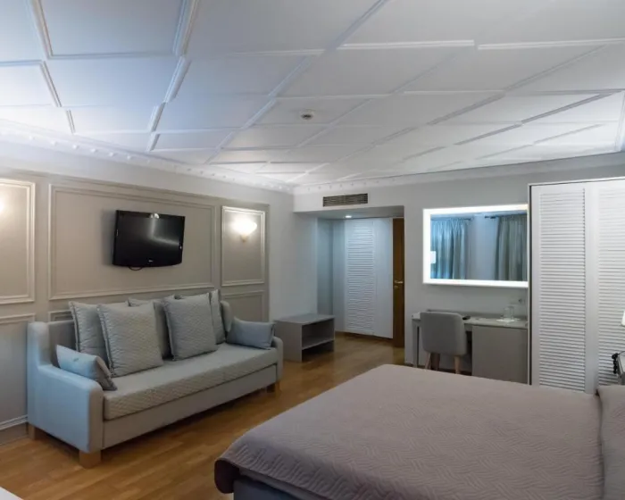 Sobe su opremljene klima uređajem i individualno podešavajućim grejanjem. Sobe imaju krevet za jednu osobu i kauč na razvlačenje. Dodatni kreveti se mogu zatražiti. Sef i mini bar su takođe dostupni. Gosti će takođe naći mini frižider među standardnim sadržajima. Set za peglanje je obezbeđen radi praktičnosti gostiju. Takođe se obezbeđuju direktan telefonski poziv, televizor sa satelitskim/kablovskim kanalima, radio i WiFi (bez dodatne naplate). Kupatila su opremljena tušem i kadom, kao i fenom za kosu. Hotel ima porodične sobe i 25 soba za nepušače.