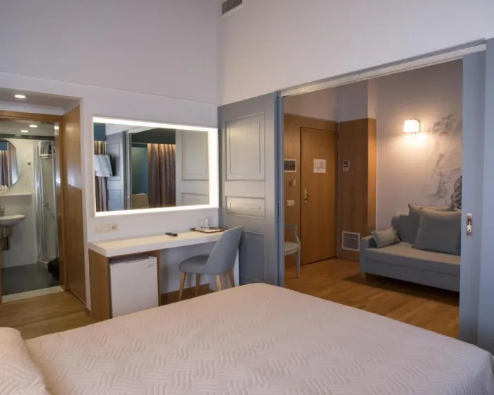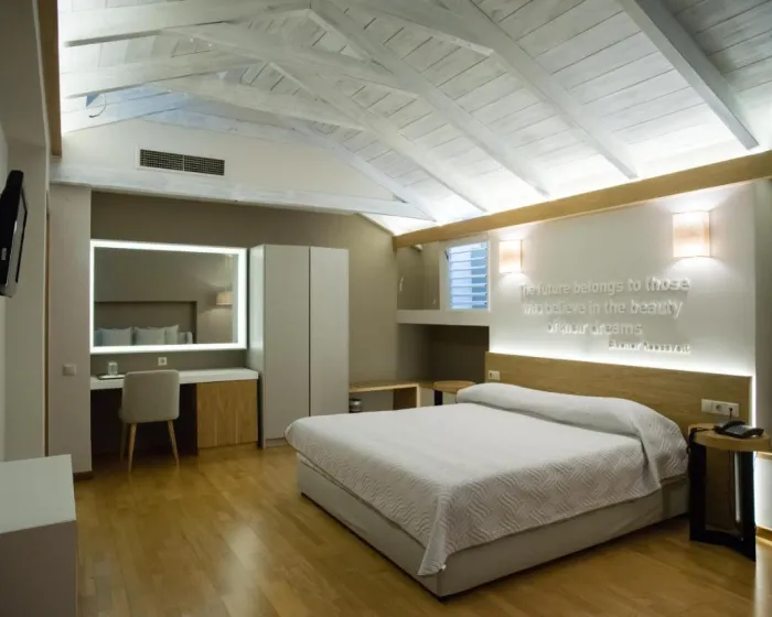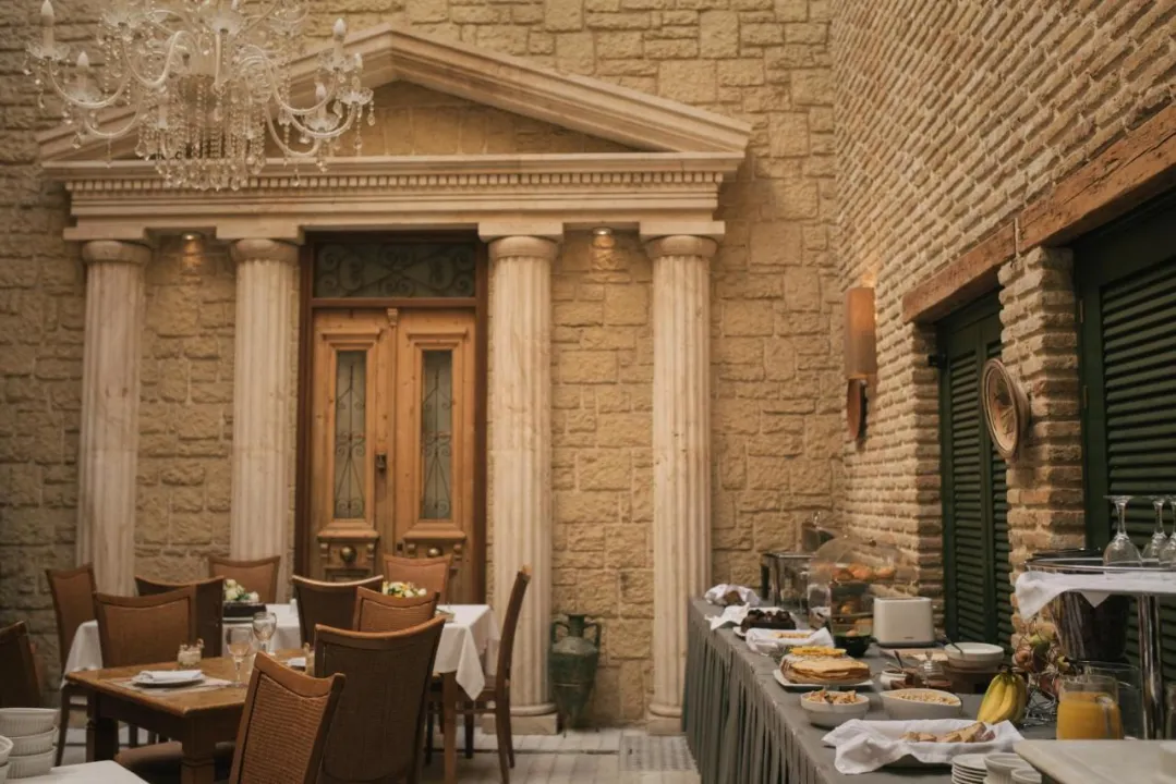 Byzantino Boutique Hotel se nalazi na raskrsnici dve glavne ulice u gradu Patrasu. Nalazi se na udobnoj pešačkoj udaljenosti od gradske skupštine, lokalnih vlasti i korporacija. Hotel ima juniorski apartman, 3 jednokrevetne sobe i 21 dvokrevetnu sobu, koje se nalaze na 3 sprata i dostupne su liftom. Osoblje koje govori engleski i nemački na recepciji u lobiju je spremno da vam pomogne prilikom prijave i odjave. Sadržaji uključuju uslugu čuvanja prtljaga i sef. Bežični pristup internetu u javnim prostorijama omogućava gostima da ostanu povezani. Kamin stvara ugodnu atmosferu. Takođe postoje brojne prodavnice koje su idealne za šetnju i razgledanje. Dodatni sadržaji uključuju kioske sa novinama i TV sobu. Gosti koji dolaze automobilom mogu parkirati svoja vozila na parkingu. Dodatne usluge i sadržaji uključuju uslugu čuvanja dece, uslugu iznajmljivanja automobila, medicinsku pomoć, uslugu posluge u sobi, uslugu pranja veša i frizera. Putnici sa biciklima mogu koristiti prostor za čuvanje bicikala na licu mesta. Besplatne novine su dostupne. Poslovni centar je na raspolaganju za poslovne zahteve gostiju.