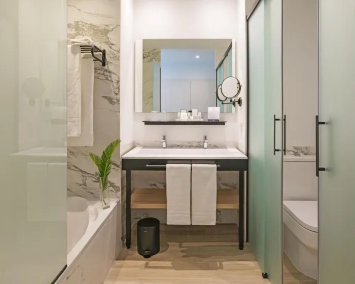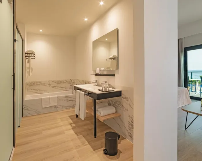 Sobe su opremljene klima uređajem i centralnim grejanjem. Gosti mogu da se opuste i uživaju u pogledu na more sa balkona ili privatne terase nekih soba. Sobe imaju bračni krevet i sofu. Dostupne su odvojene spavaće sobe. Dodatni ležajevi mogu biti zatraženi. Sef, mini bar i radni sto su takođe dostupni. Gosti će takođe naći mini frižider uključen među standardnim funkcijama. Direktni telefonski poziv, TV i WiFi (bez dodatne naplate) takođe su obezbeđeni kao i. Kupatila su opremljena tušem, kadom i bidetom. Za dodatnu udobnost, kupatila takođe pružaju fen za kosu. Sobe prilagođene invalidima mogu biti rezervisane. Hotel ima porodične sobe, nepušačke sobe i sobe za pušače.